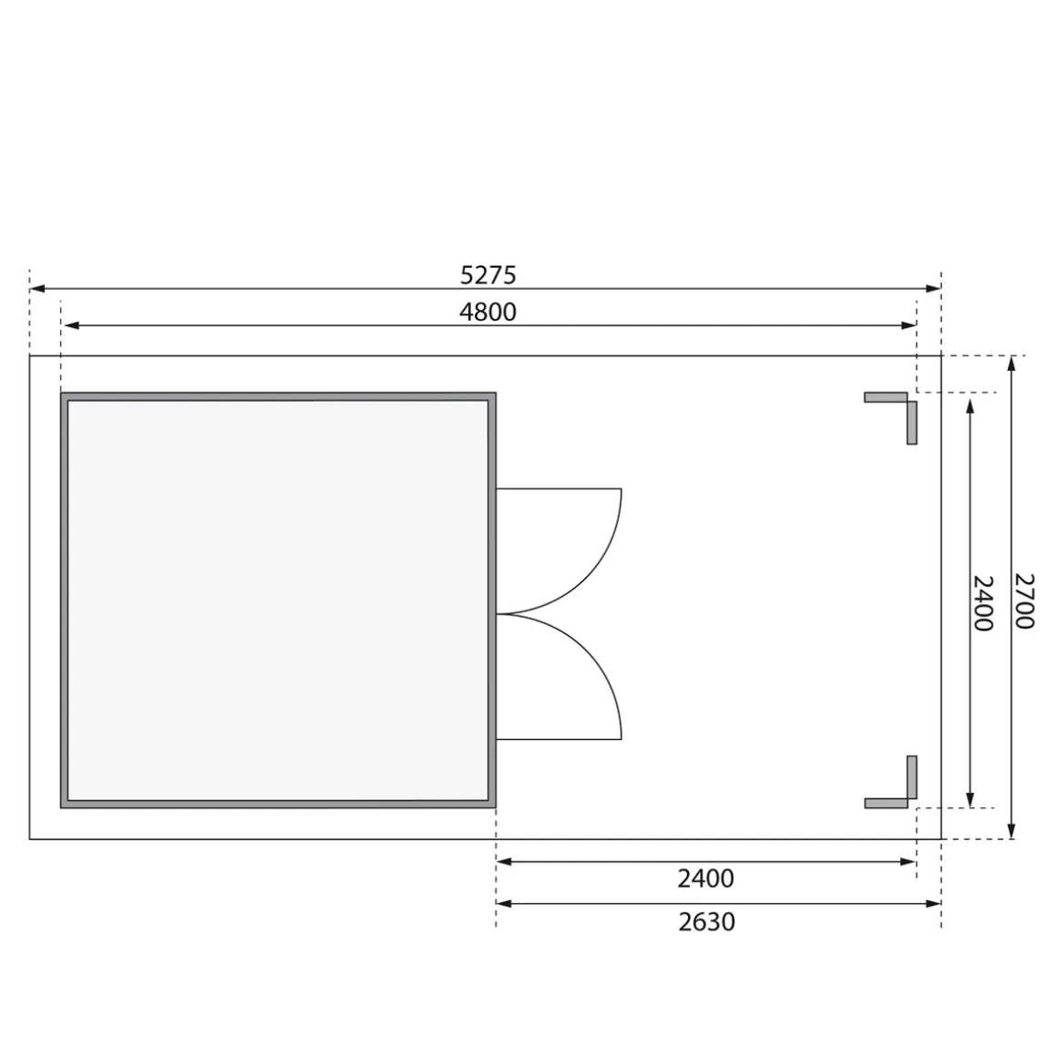Das Gartenhaus wird aus 28 mm starken Wandbrettern aus nordischer Fichte im Steck-/Schraubsystem gefertigt und gewährleistet somit einen einfachen Aufbau und eine stabile Konstruktion. Das Satteldach besteht aus Massivholzdach. Die Grundfläche beträgt 5,5 m² bei einem umbauten Raum von 12,2 m³. Mit einer Seitenhöhe von 204 cm und einer Firsthöhe von 242 cm bietet das Gartenhaus optimale Raumnutzung. Das Gartenhaus ohne Anbauten hat ein Sockelmaß von 240×244 cm. Bodenbalken sorgen für den Schutz von unten und werden unter das Gartenhaus gelegt. Durch die Kesseldruckimprägnierung der Bodenbalken sind diese vor Witterungseinflüssen und holzzersetzenden Pilzen bereits geschützt. Die praktische und vormontierte Tür sorgt mit Ihren großzügigen Abmessungen und dem Massivholzrahmen für einen einfachen Zutritt in das Gartenhaus und sichert den Inhalt nebenbei effektiv vor unbefugtem Zugriff. Die Verglasung der Lichtausschnitte sorgt für großzügigen Tageslichteinfall.