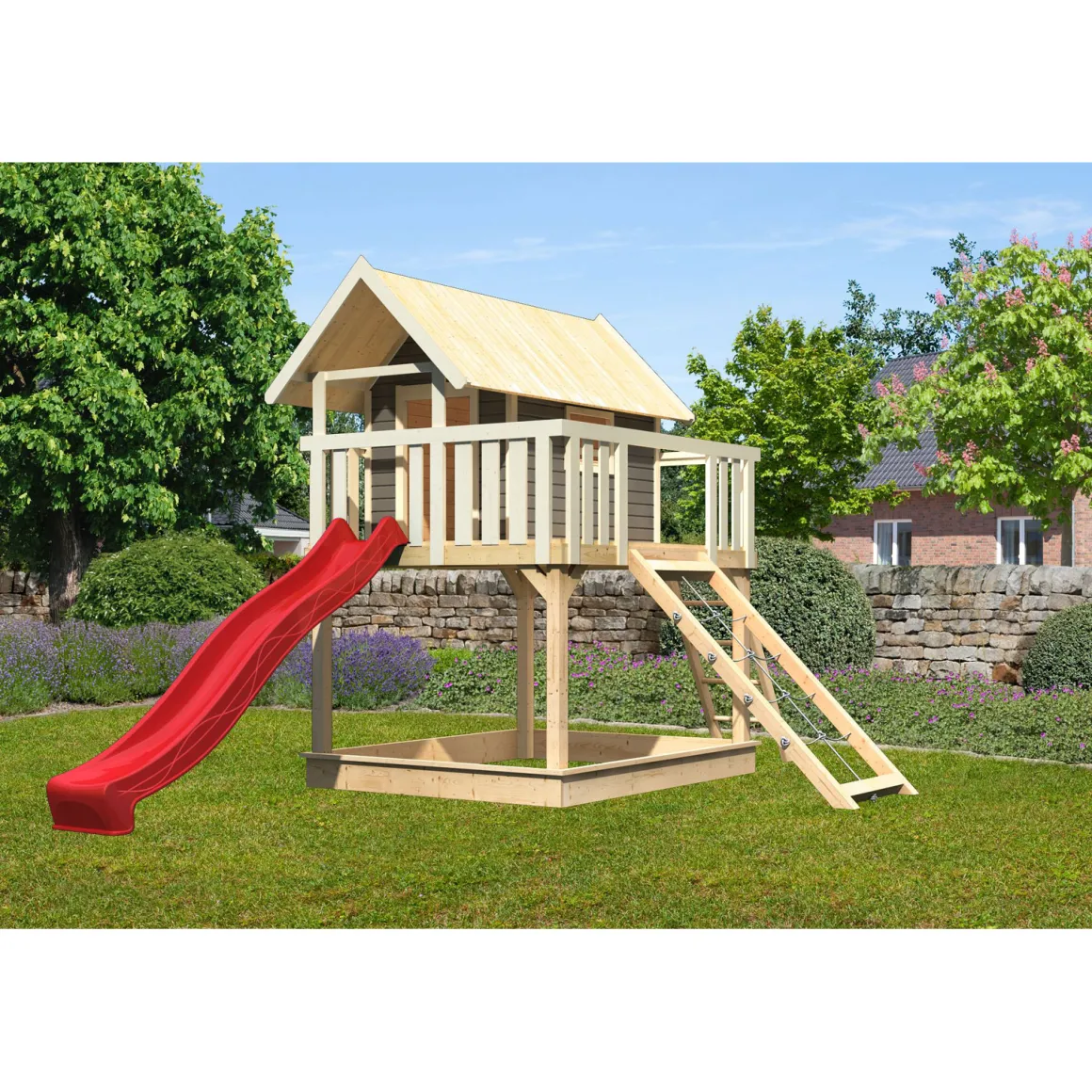 Karibu Fidel inklusive Rampe terragrau Rutsche rot