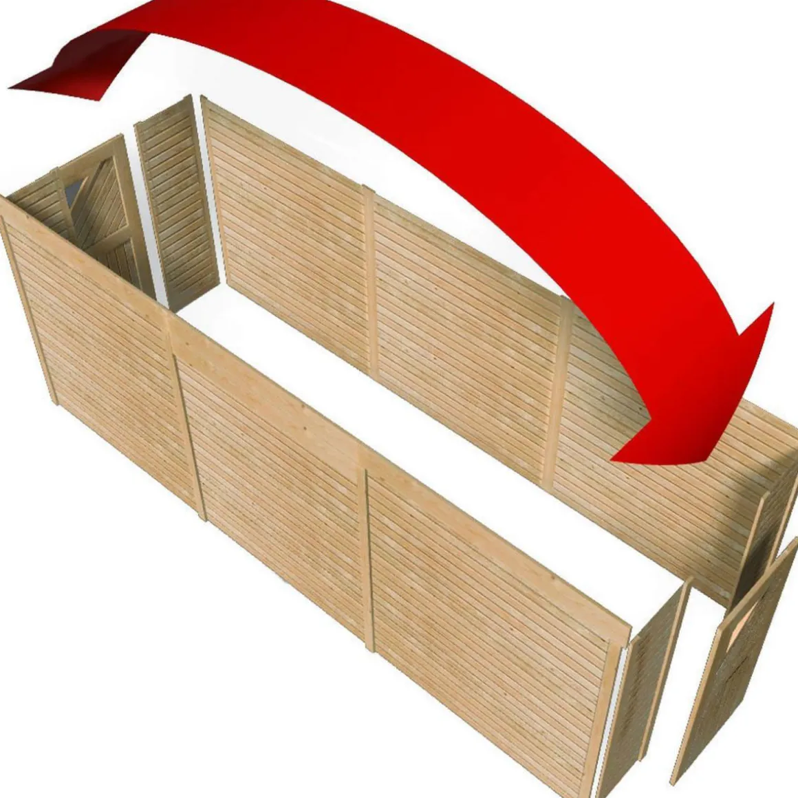 Karibu Blockbohlenhaus Kastorf 6 naturbelassen mit Anbaudach und Seiten