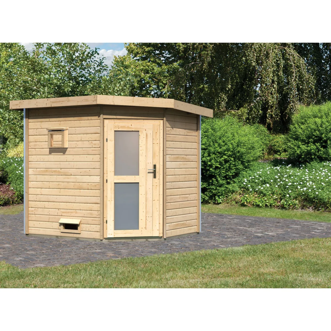 Karibu Saunahaus Mikka 38 mm ohne Ofen Milchglastür