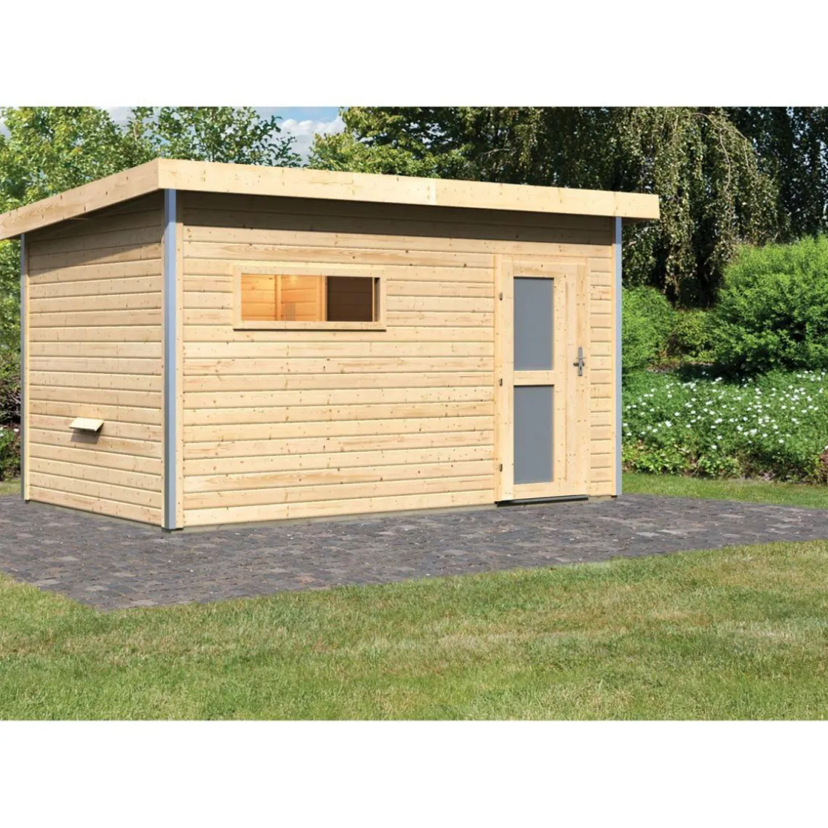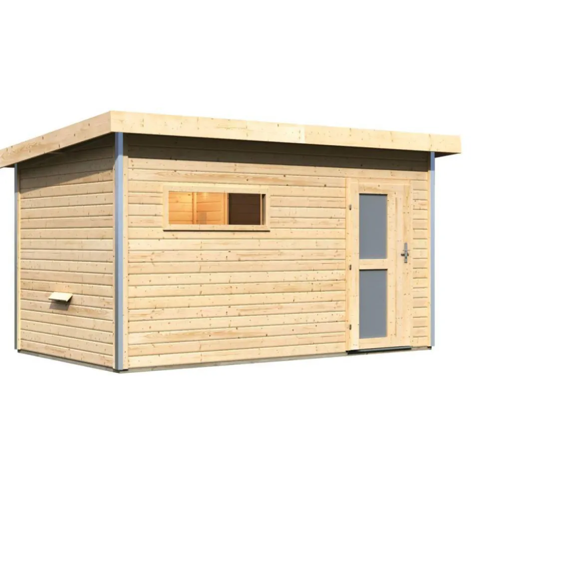 Karibu Saunahaus Skrollan 38 mm ohne Ofen Milchglastür