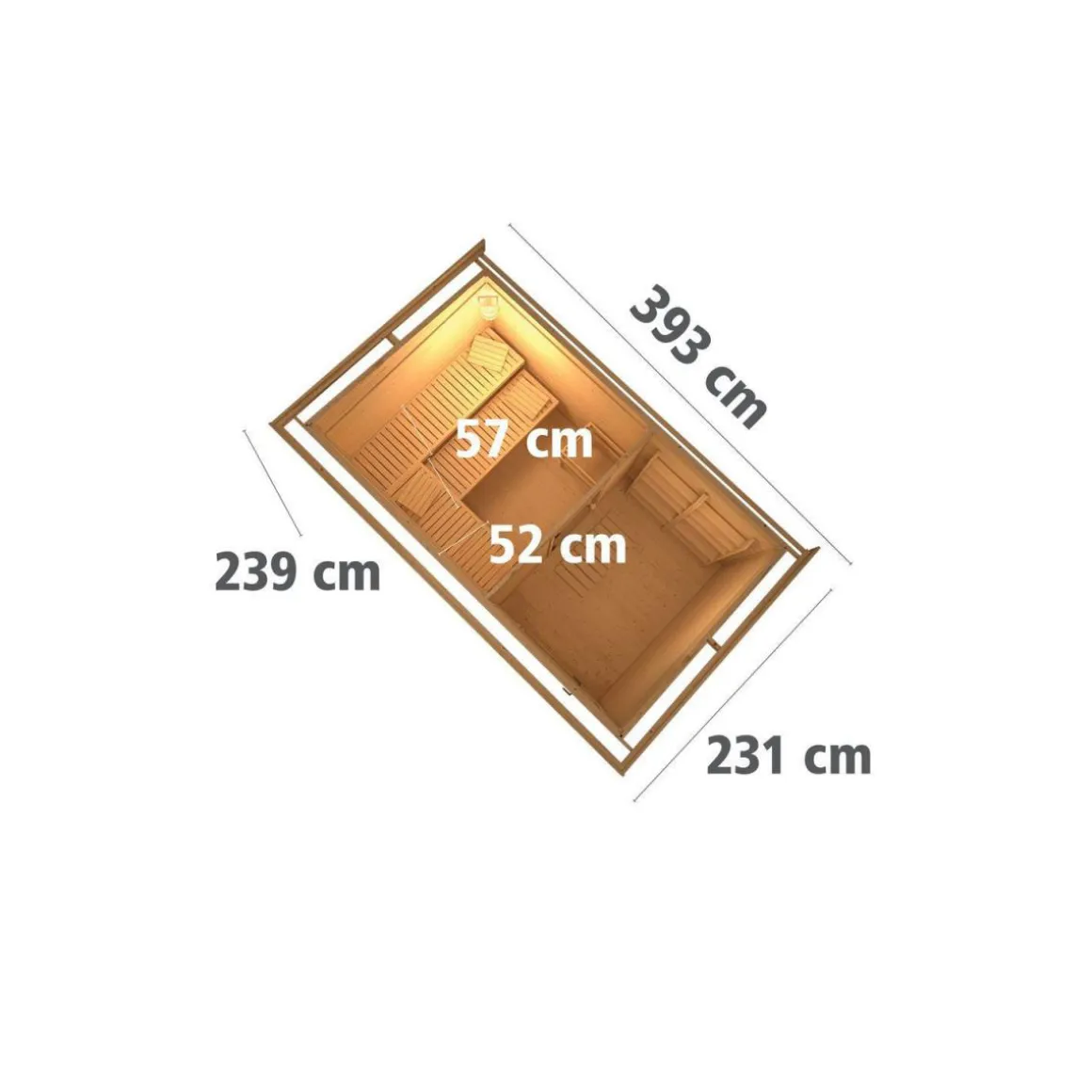 - Lieferumfang: Ofenschutzgitter, Schrauben und Beschläge, Montageanleitung und Produktinformationsblatt, Saunawände und Saunadach, 3 Bänke