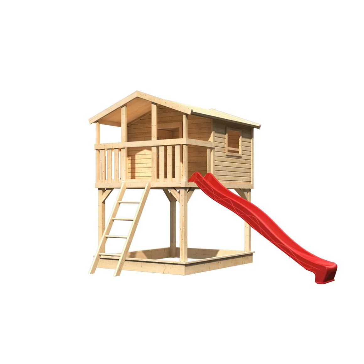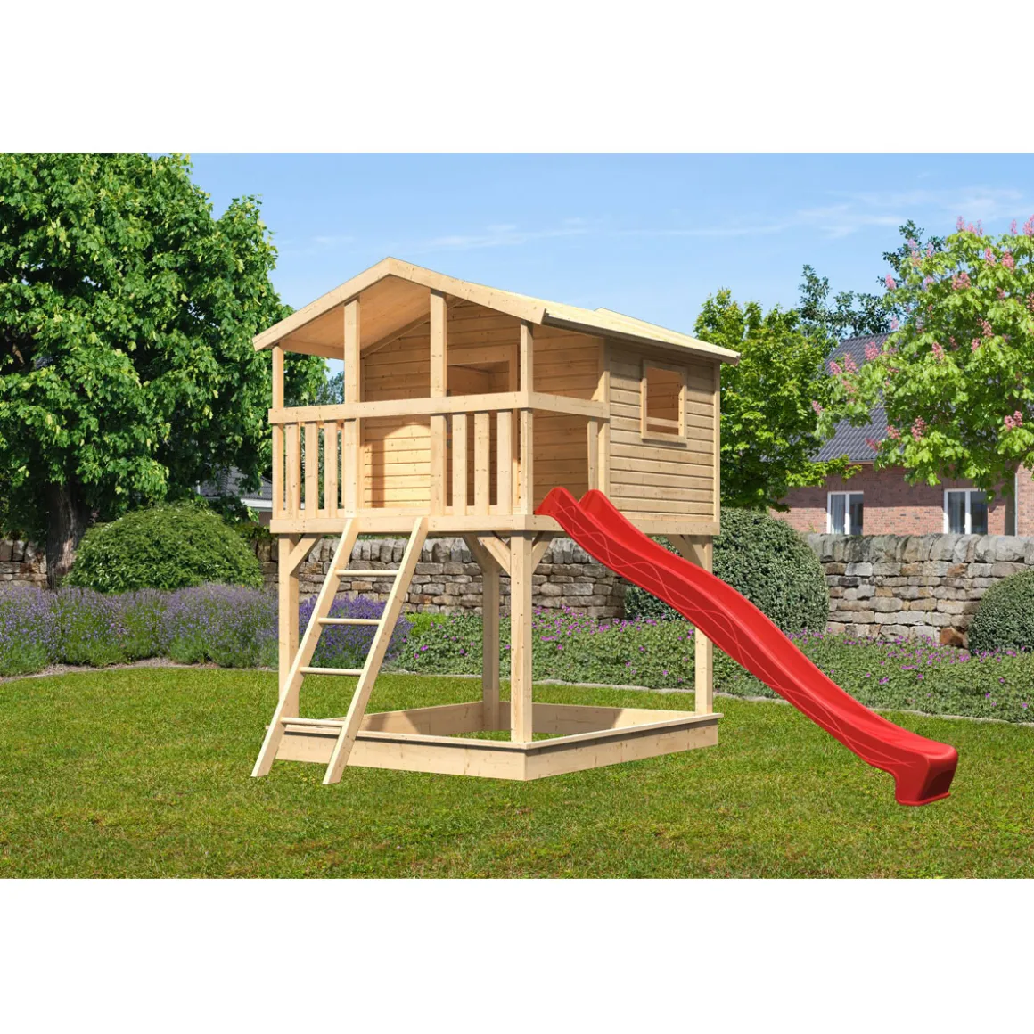 Karibu Stelzenhaus Benjamin naturbelassen inkl Rutsche rot