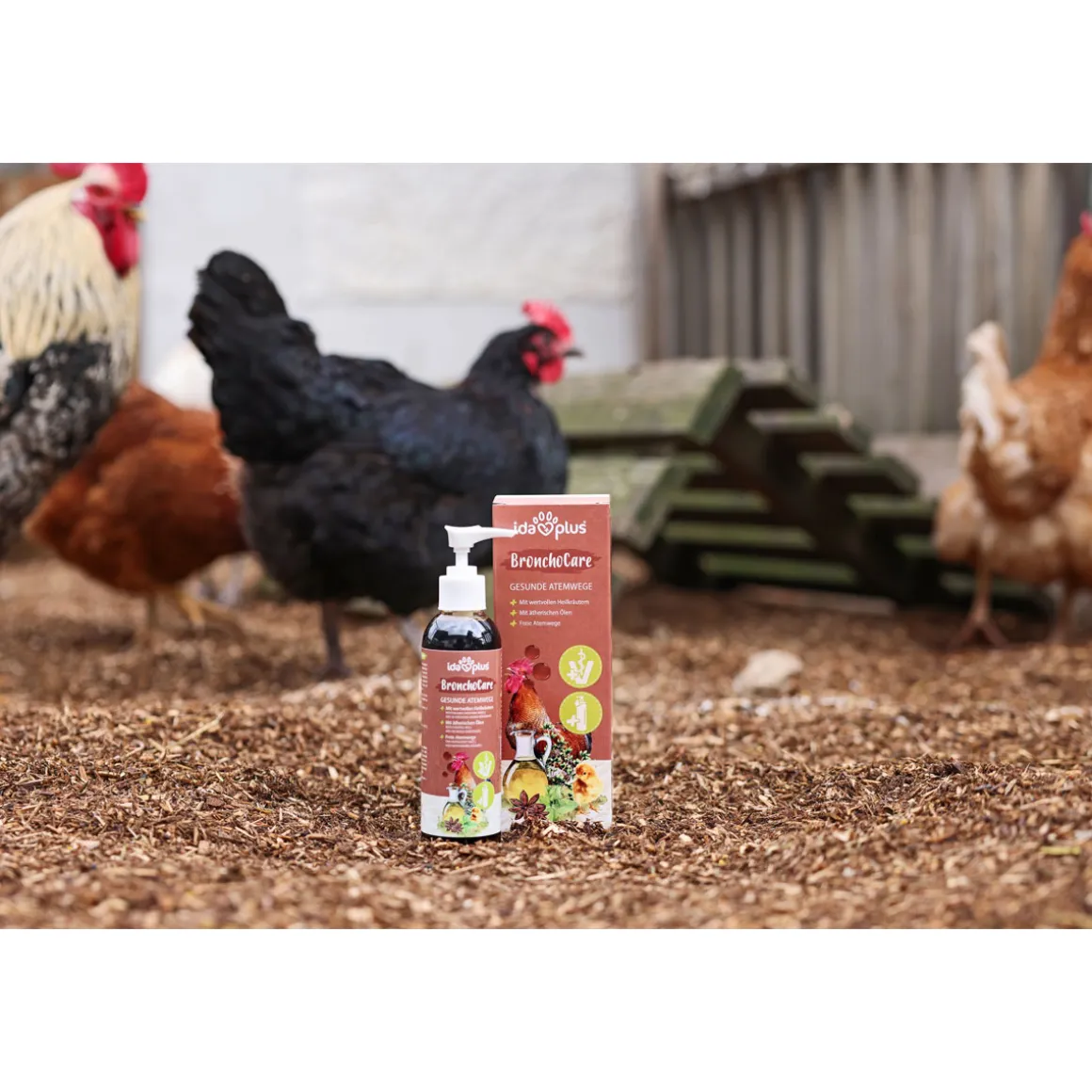 Ergänzungsfuttermittel für Geflügel, gleicht gezielt Mangelerscheinungen aus, mit Heilkräutern und ätherischen Ölen, für freie Atemwege, auch für Küken, Wachteln und anderes Geflügel geeignet.