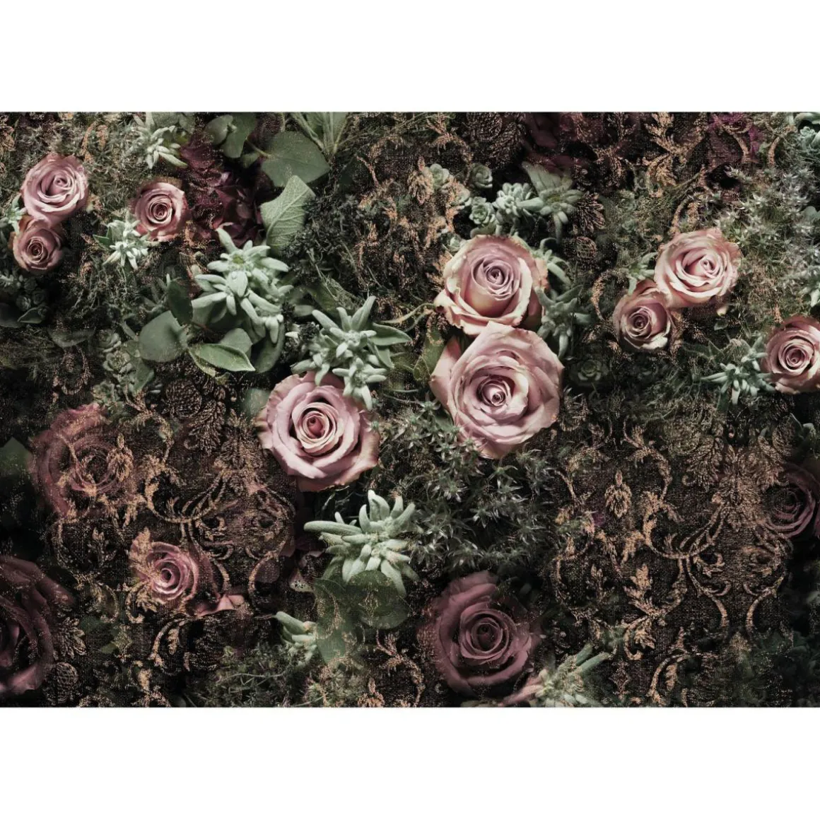 - Papier-Fototapete mit floralen Pflanzenmotiven in Grün und Rosa