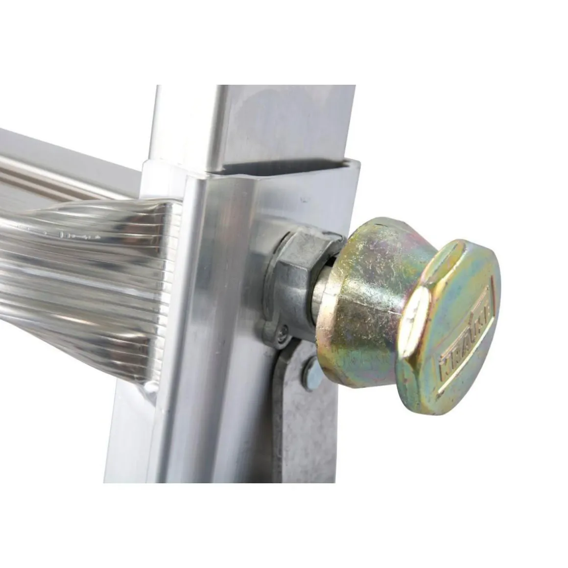 Die Krause Teleskopleiter TeleVario mit Holmverlängerung überzeugt durch ihre hohe Belastbarkeit von bis zu max.150 kg sowie ihre vielseitigen Einsatzmöglichkeiten als Vielzweck-, Anlege-, Doppelstehleiter oder Arbeitsbühne. Das ClickMatic-System zur Höhenverstellung sowie die treppengängige Funktion erleichtern den Einsatz auf unterschiedlichen Untergründen. Mit einer Transportlänge von nur ca.160 cm lässt sich diese Leiter leicht verstauen und transportieren.