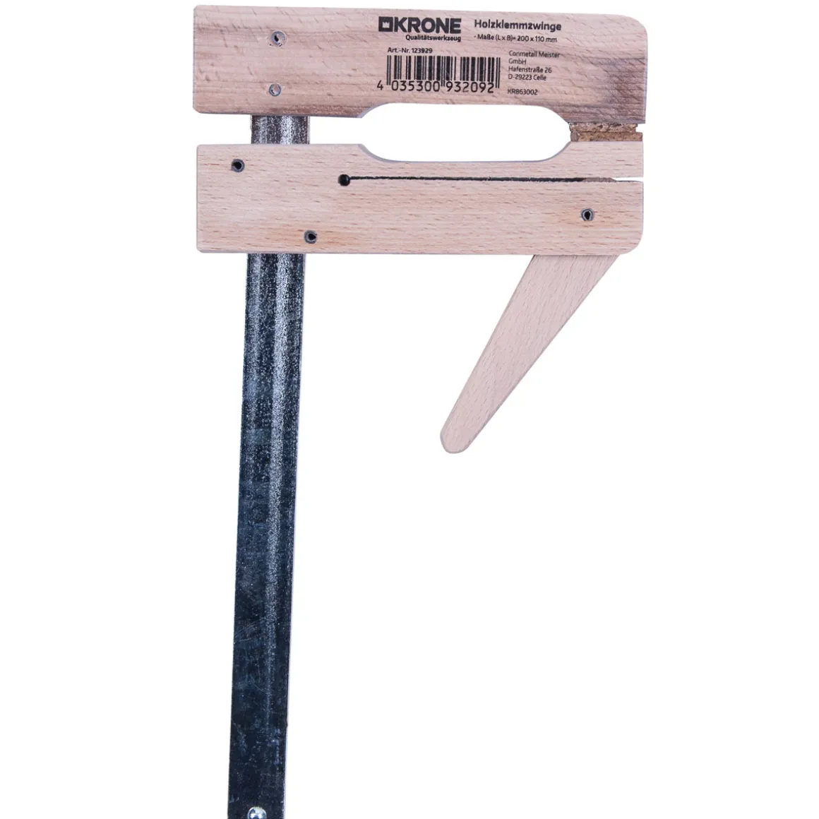 Mit der Krone Holzklemmzwinge haben Sie ein zuverlässiges Werkzeug zur Hand, um Holz sicher und präzise zu bearbeiten. Die Klemmzwinge ist aus hochwertigem Material gefertigt und überzeugt durch ihre maximale Spannweite von 200 mm sowie eine Ausladung von 110 mm.