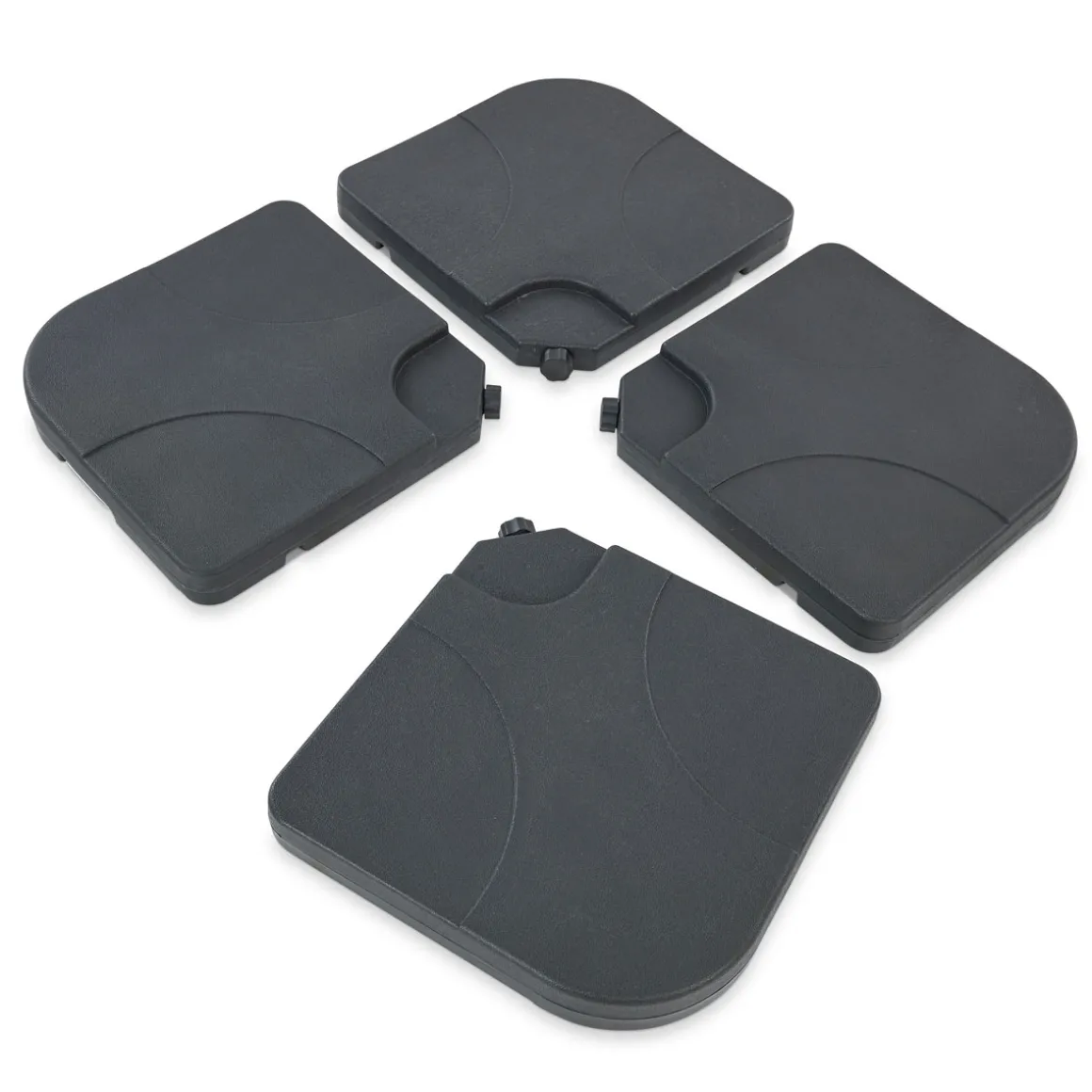 - jede Kunststoffplatte kann mit ca. 15 Litern Wasser oder ca. 20 kg Sand oder Kieseln befüllt werden