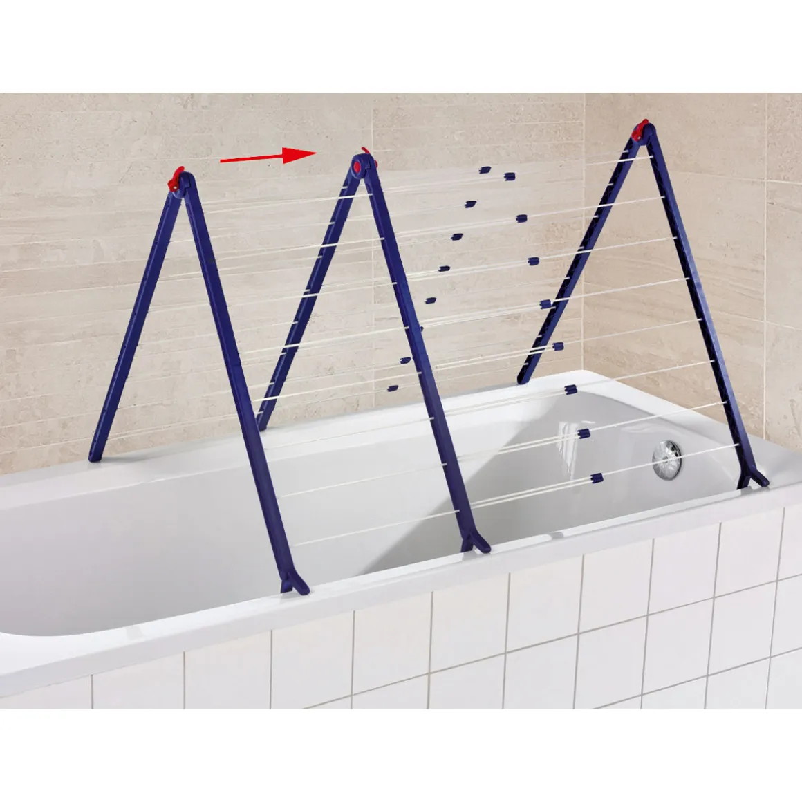- – Kann flach auf die Badewanne gelegt werden, um empfindliche Wäscheteile zu trocknen