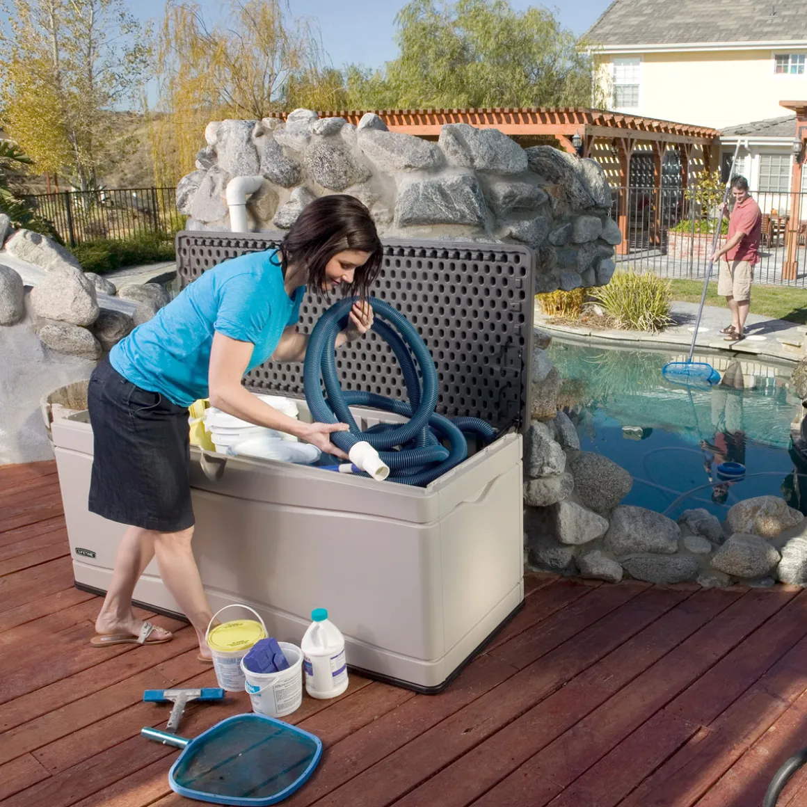 Stauraum für deine Gartenutensilien – Lifetime Kissenbox. Die bessere Kissentruhe: unverwüstlich, wetterfest, ca. 500 l Stauraum.