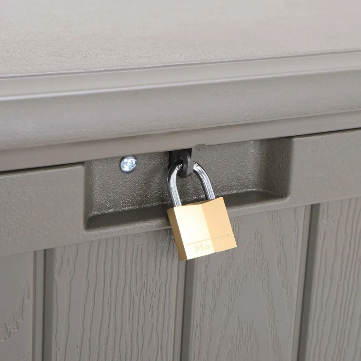 Besonderheiten: * Doppelwandiger (26mm) HDPE Kunststoff, stahlverstärkt * Absolut UV-beständig und wasserabweisend * Enorme Stabilität: 300kg Traglast * Mit Gasdruckfedern und Vorrichtung für Hängeschloss