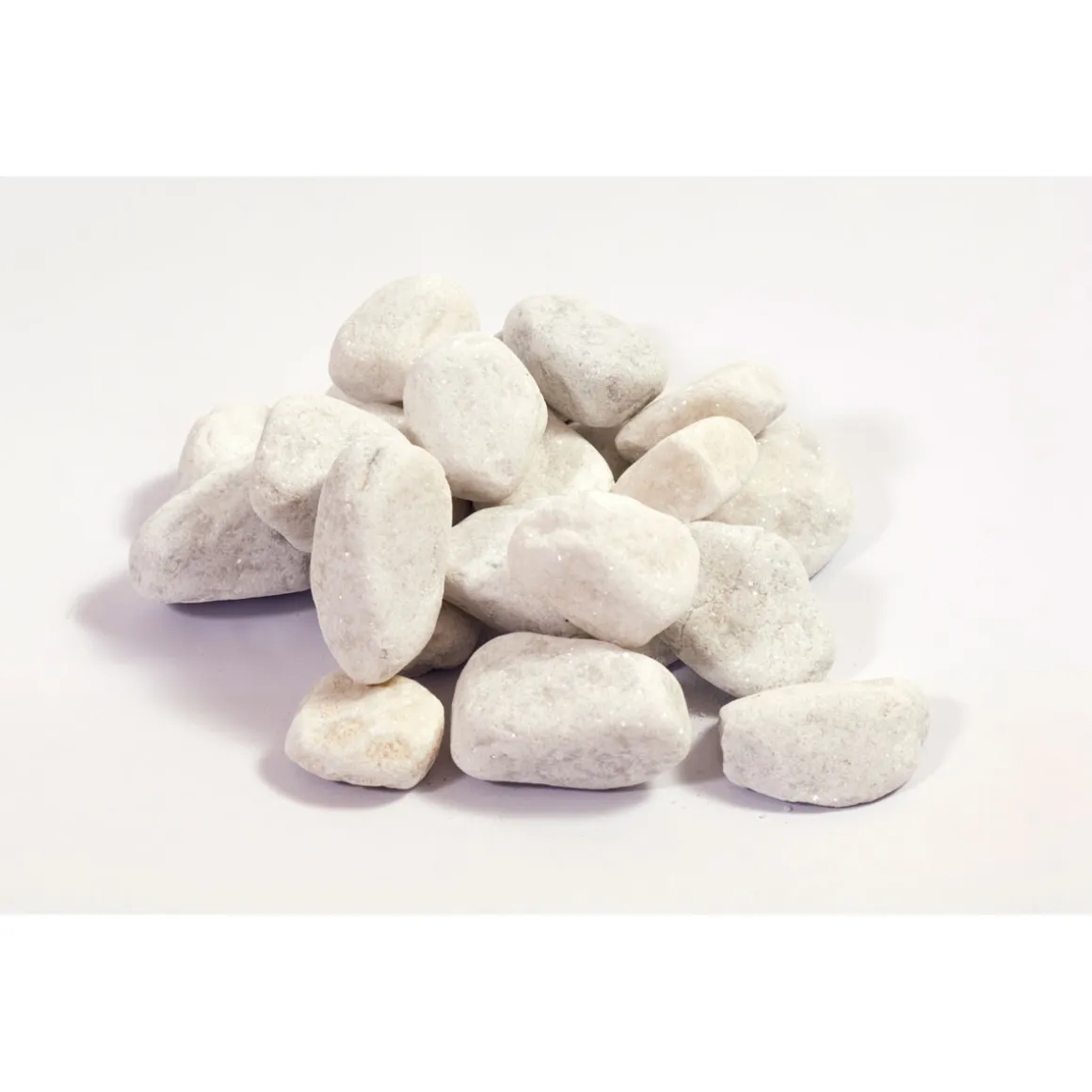 Mit dem Marmorkies weiß 20-40 mm holen Sie sich mediterranes Flair in Ihren Garten. Der weiße Kies eignet sich perfekt zur Gestaltung von Gabionen und verschönert damit jeden Außenbereich.