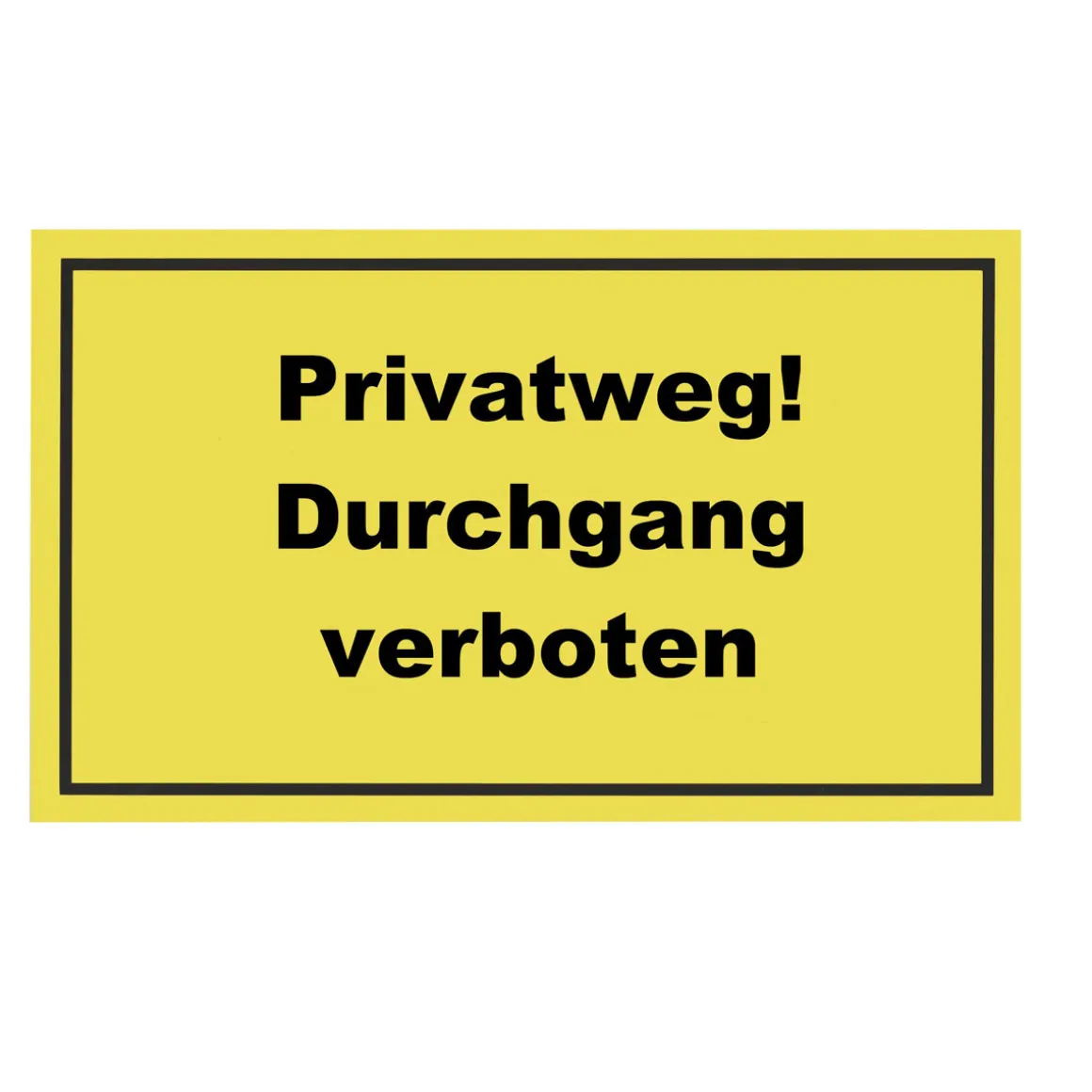 - – Abgebildeter Text: Privatweg ! Durchgang verboten