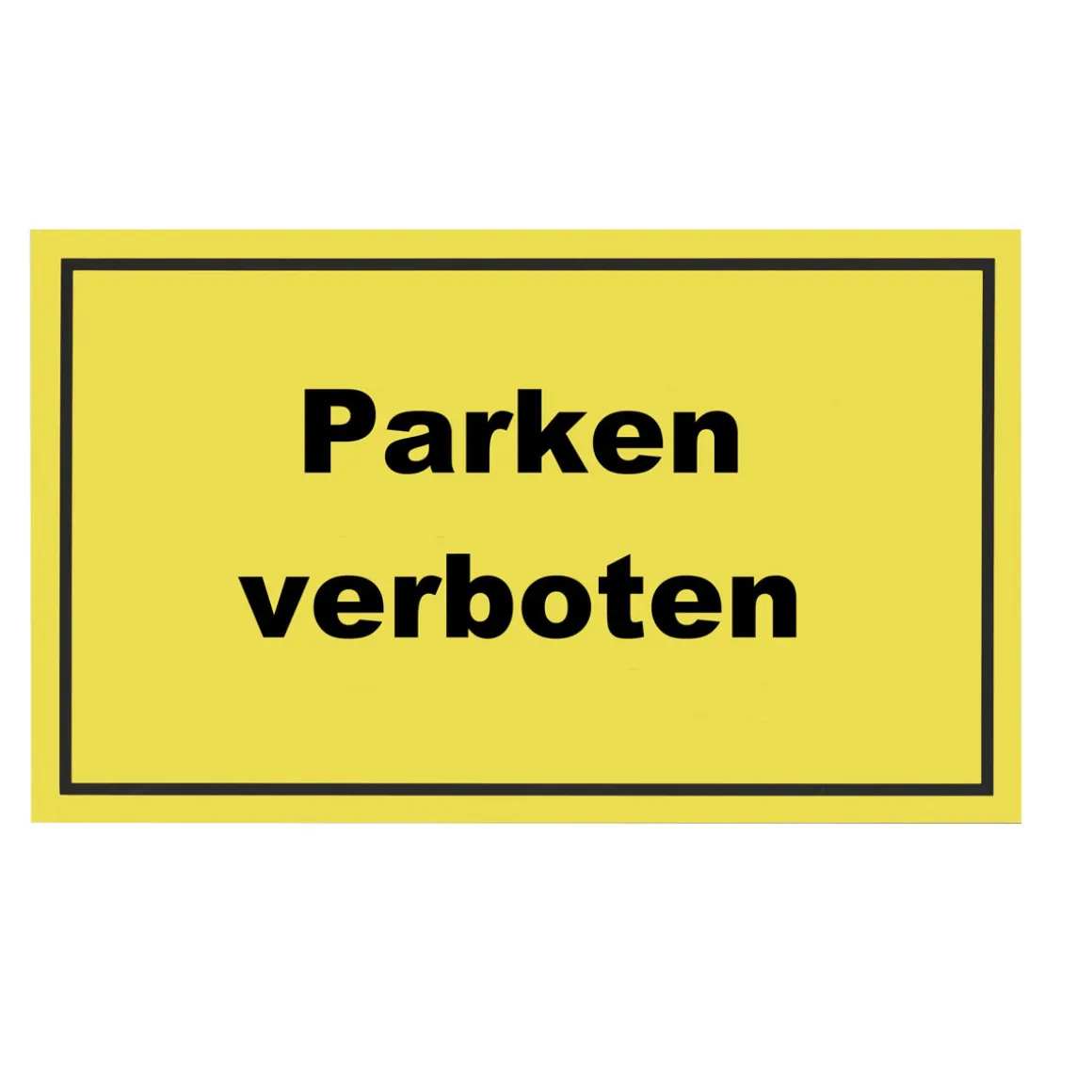 - – Farbe: gelb mit rotem Text ‚Parken verboten‘