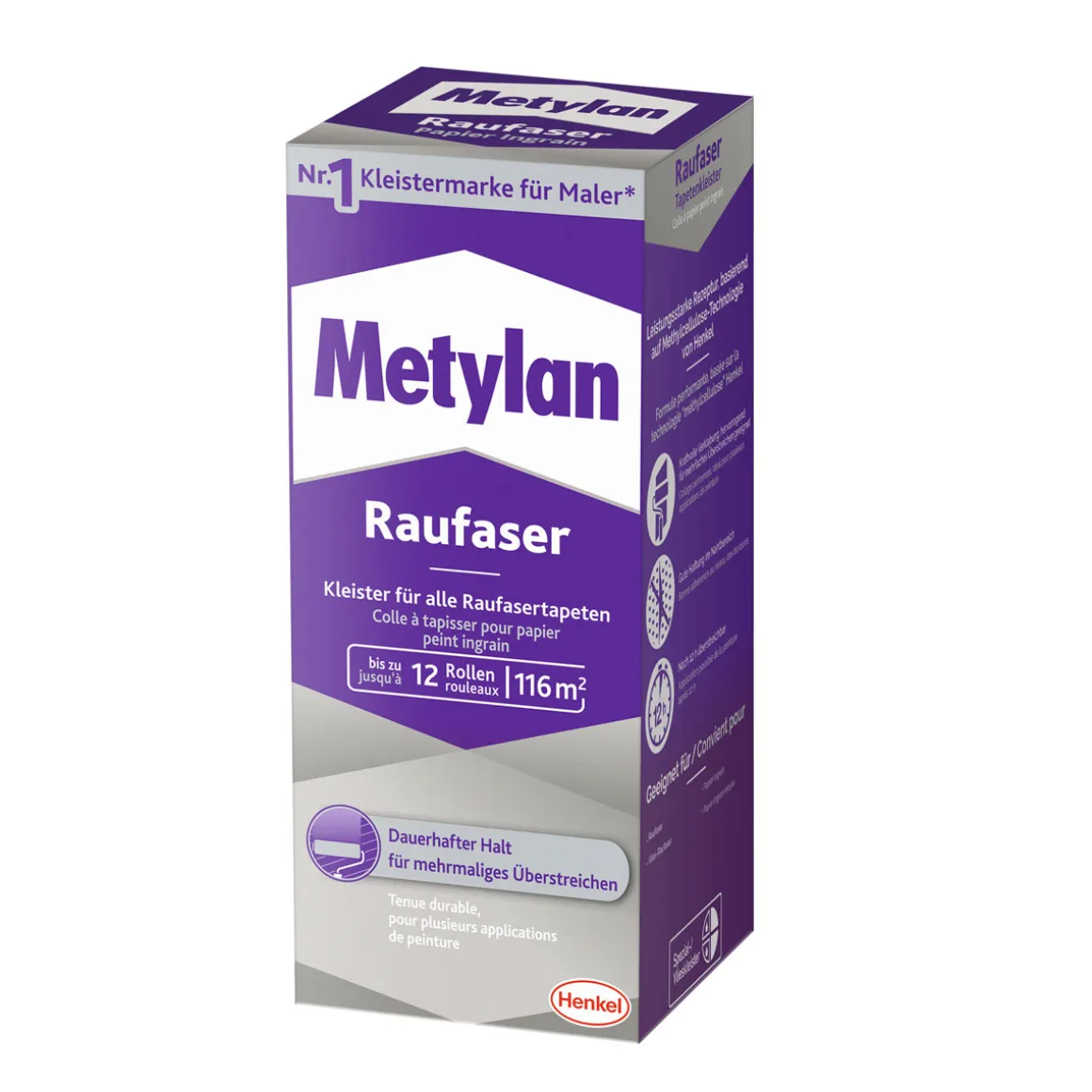 Mit dem Metylan Metylan Kleister Raufaser wird das Tapezieren zum Kinderspiel. Die hohe Klebkraft, starke Anfangshaftung sowie die Möglichkeit zur korrigierbaren Verarbeitung machen den Tapetenkleister besonders einfach in der Handhabung. Dank seiner Ergiebigkeit von ca. 116 m² pro Packung ist er zudem äußerst sparsam im Verbrauch und somit auch preislich attraktiv.