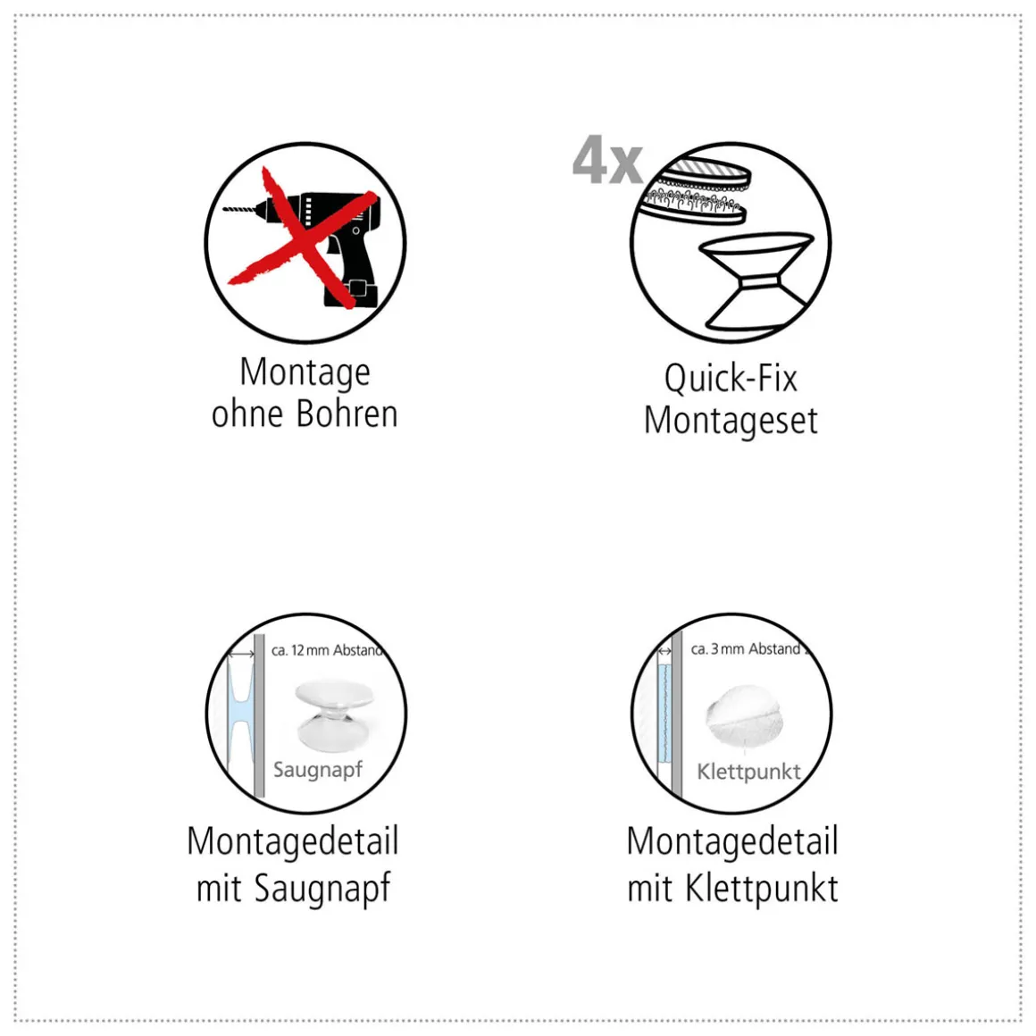 - Saugnäpfe ermöglichen eine einfache Montage ohne Bohren oder Kleben, ideal für Mietwohnungen