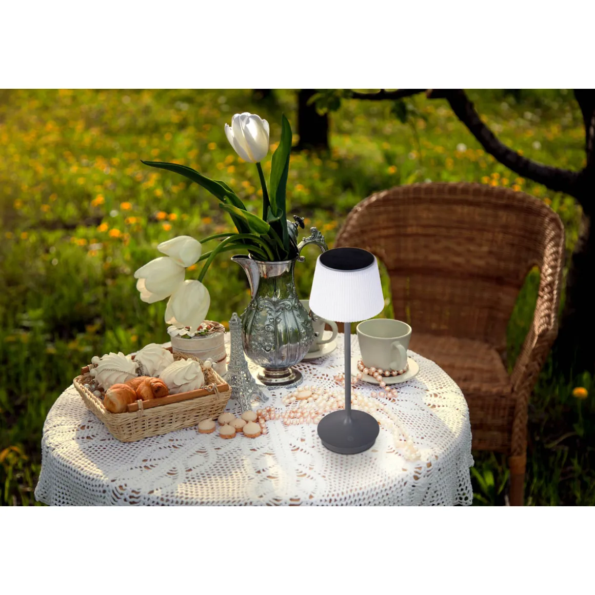 Erleben Sie jetzt selbst den Unterschied: Mit der dimmbaren TL Emmi Metall/KS grau holen Sie sich nicht nur eine energieeffiziente LED-Tischleuchte ins Haus–Sie setzen zugleich ein echtes Statement in Sachen Stil & Komfort! Ob als dekoratives Highlight im Wohnzimmer,nützliches Leselicht neben dem Bett odersmarte Outdoor-Leuchte–die vielseitigen Einsatzmöglichkeiten lassen keine Wünsche offen.Die einfache Bedienbarkeit via Touchsensor,das flexible Umschalten zwischen unterschiedlichen Farbtemperaturen(CCT)undder leistungsstarke,wiederaufladbare Akku machen dieses Modell zum Must-havefür anspruchsvolle Kunden.Warten Sienicht länger:sichern Siesich noch heute Ihre neue Lieblingslampeund genießen Siewohnliches Wohlfühllicht wann&wo immerSie möchten!