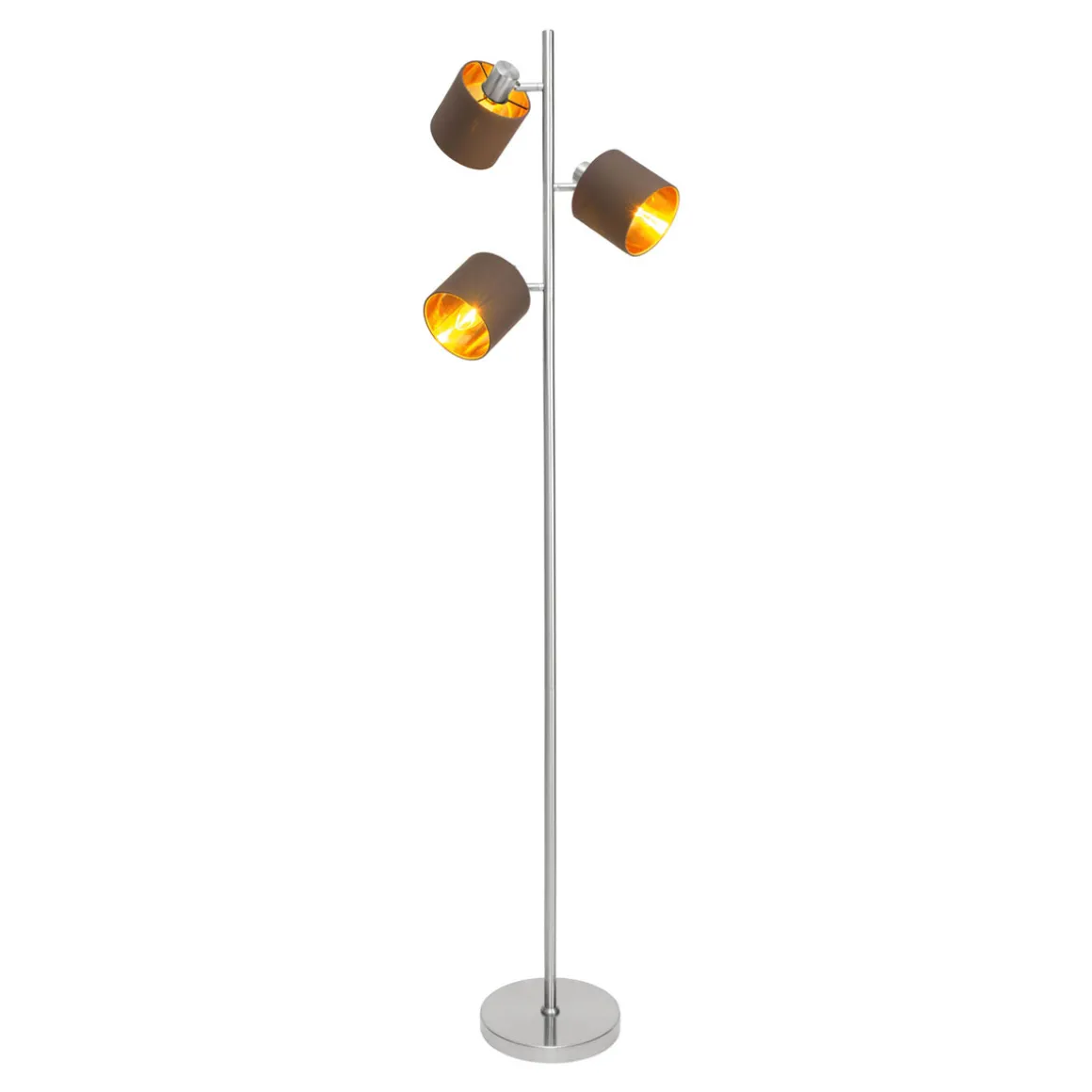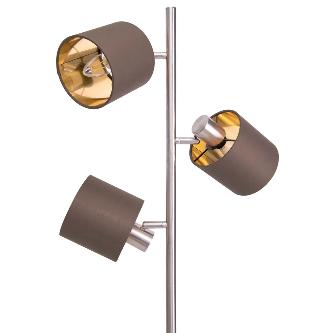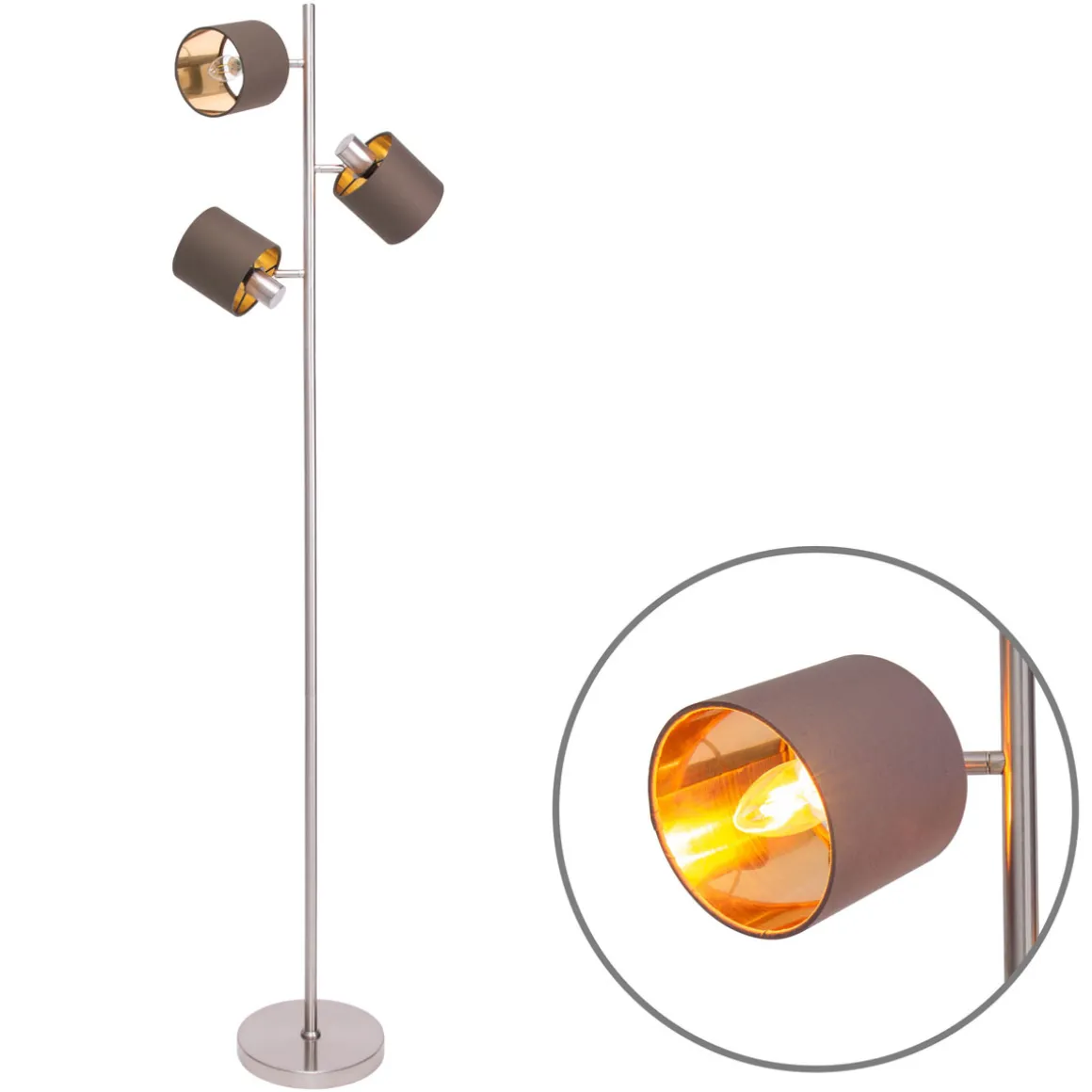Die MARON Stehleuchte aus unserer Kollektion ist ein echter Hingucker für jeden Wohnraum. Sie sind flexibel im Einsatz, sie können als dekorative Elemente fungieren, den Einrichtungsstil ergänzen, Kontraste setzen oder Designakzente setzen. Sie benötigen nur eine kleine Stellfläche und können in Ecken oder hinter Möbeln platziert werden, ohne viel Raum einzunehmen. Dies ist besonders vorteilhaft in kleineren Räumen oder bei limitiertem Platzangebot. Mit ihrer abgestuften Gestalt und ihrem zierlichen Design ist diese Leuchte im Klassischer Stil ein echter Blickfang für alle, die es elegant mögen. Egal ob im Wohnzimmer, Schlafzimmer oder Büro – diese braune Leuchte aus Metall und Textilmaterial sorgt für einen Blickfang. Das satinierte Gestell harmoniert mit dem bezogenen Schirm Die Stehleuchte misst 22 cm in der Länge, 35 cm in der Breite und 152,8 cm in der Höhe. Die Stehleuchte ist mit einem Druckschalter und einem Stecker-Netzteil ausgestattet. Die Zuleitung hat eine Länge von 180 cm. Diese Stehleuchte ist die perfekte Lösung für Ihre Innenraumbeleuchtung. Durch die Möglichkeit, das Leuchtmittel selbst zu wechseln, sind Sie nicht nur flexibel, sondern sparen auch bares Geld. Mit der Klasse 2 und der Schutzart IP20 ist dieses Produkt ideal für den Einsatz im Innenraum. Dieses Gerät ist für den Anschluss an das Stromnetz konzipiert und wird mit einer Netzspannung von 220-240V ~ 50Hz versorgt. Die Leuchte hat eine Gesamtleistung von 120 Watt.