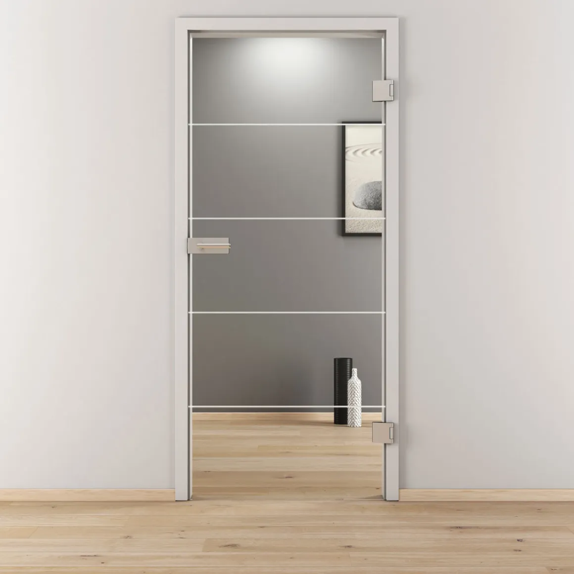 Die Novadoors Glasdrehtür 582-1 ist die ideale Wahl für alle, die auf der Suche nach einer modernen und stilvollen Tür für ihr Büro oder ihren Innenbereich sind. Mit ihrem klaren Design und den schmalen, waagerechten Streifen verleiht sie jedem Raum eine elegante Note.