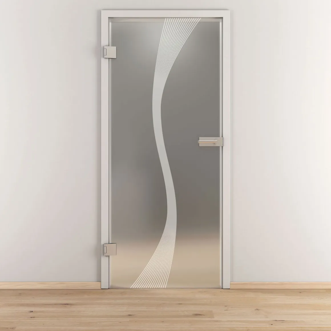 Verleihen Sie Ihrem Innenbereich eine moderne und elegante Note mit der Novadoors Glasdrehtür NOVA 583 mattiert. Diese hochwertige Glastür besticht durch ihr stilvolles Wellendekor und die matte Oberfläche, die nicht nur optisch beeindruckt, sondern auch für ein angenehmes Raumgefühl sorgt. Mit einer Stärke von 8 mm aus robustem Einscheiben-Sicherheitsglas (ESG) bietet sie Stabilität und Langlebigkeit. Die abgerundeten Kanten verleihen der Tür einen edlen Look und sorgen gleichzeitig für Sicherheit im Alltag. Perfekt geeignet für den Einsatz im Büro oder anderen Innenräumen, schafft diese Drehtür eine harmonische Verbindung zwischen Funktionalität und Design.