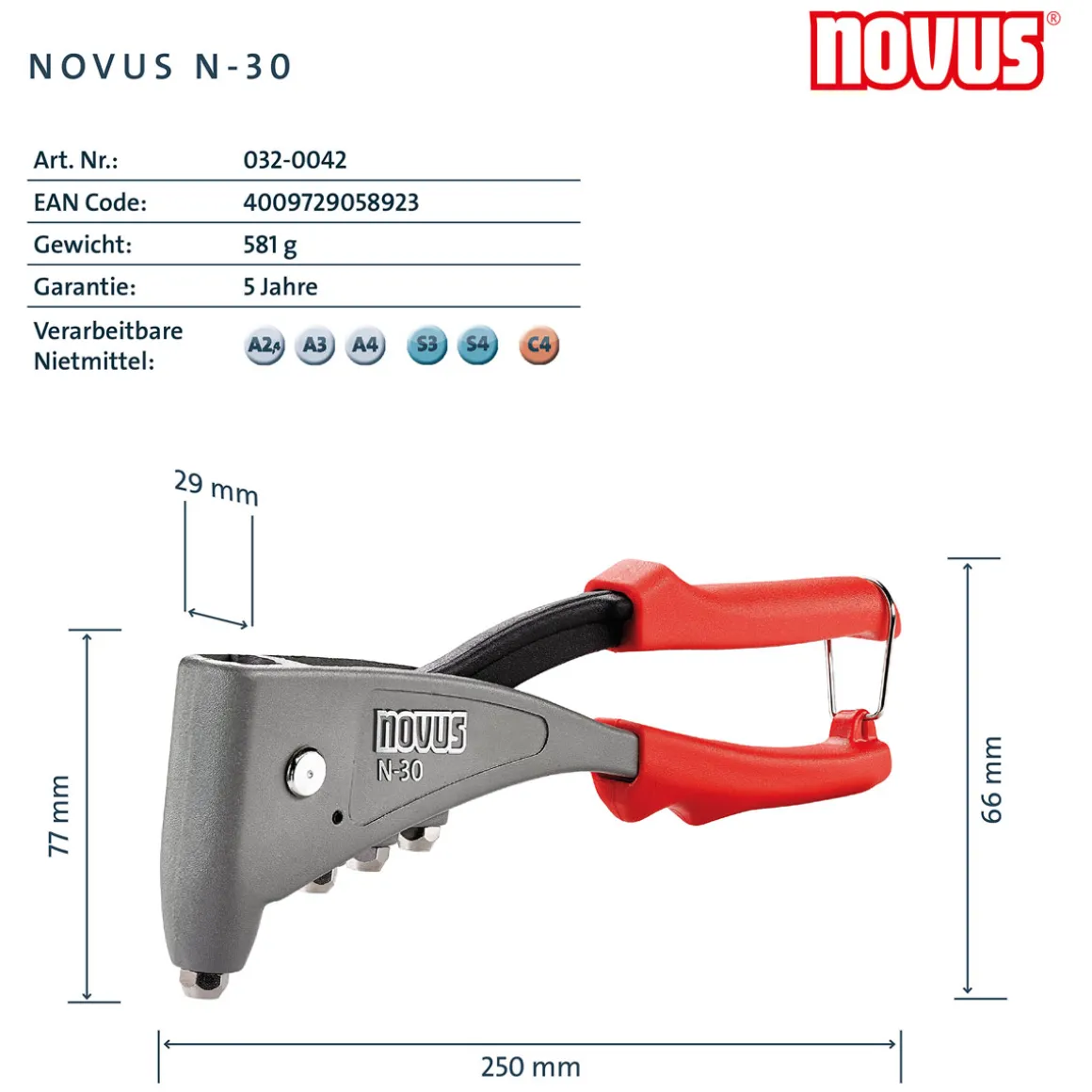 Novus Blindnietzange N-30 – Ihr zuverlässiger Partner für präzise Befestigungen