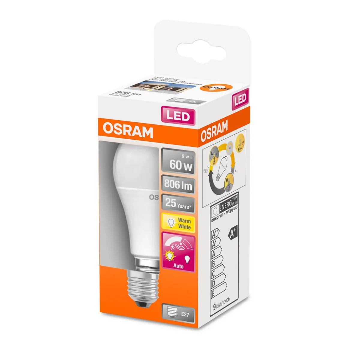Osram LED-Glühlampe E27 warmweiß Bewegungssensor – Energiesparendes Licht mit intelligentem Sensor