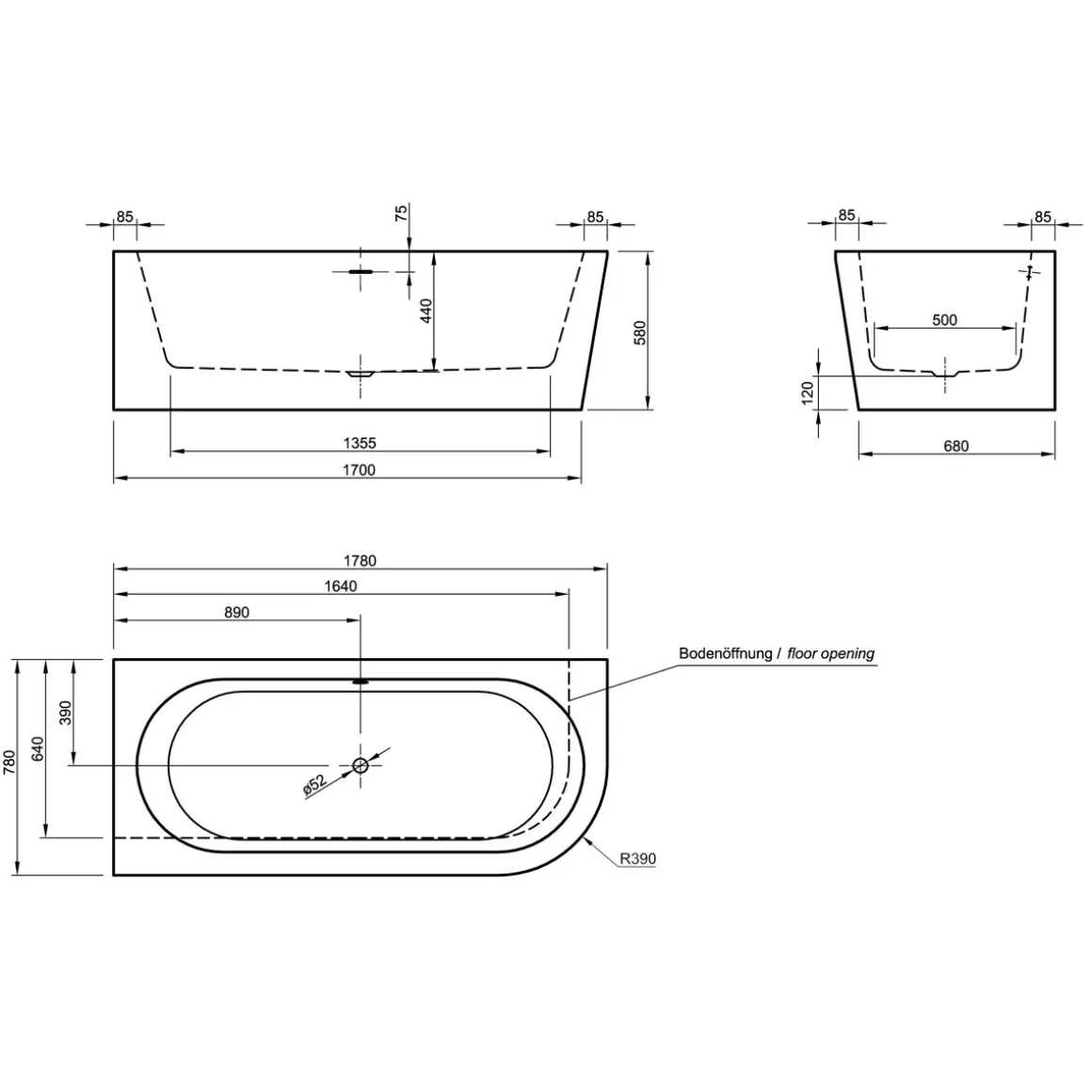 Ottofond Badewanne Modena Corner 178 x 78 cm weiß Ausführung Modell A