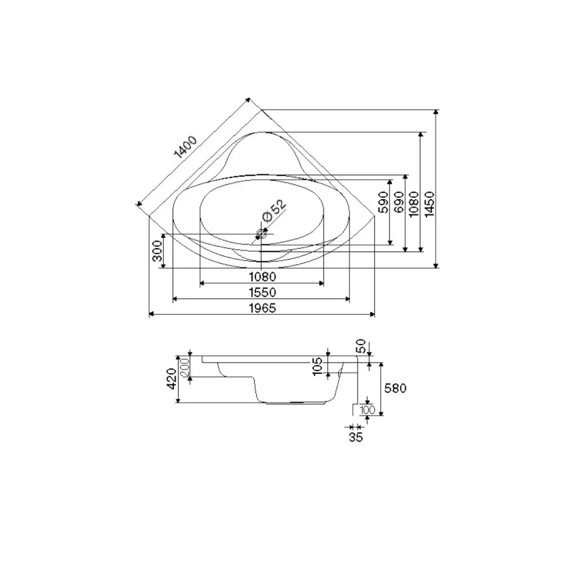 - – Durchmesser Ablauf (mm): 52 mm