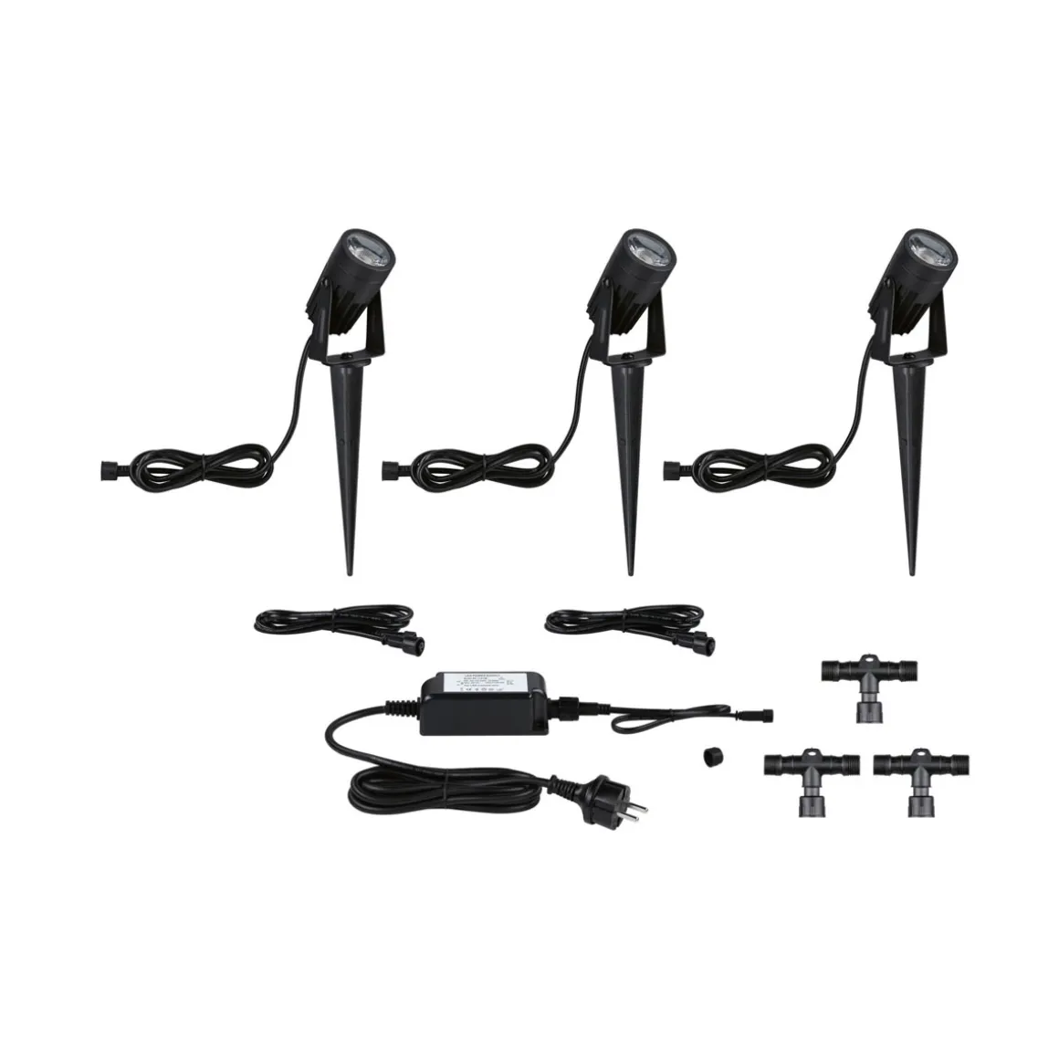 | Lieferumfang: | 3 x Leuchte, 1 x Trafo, 2 x Kabel, 3 x T-Verbinder |
