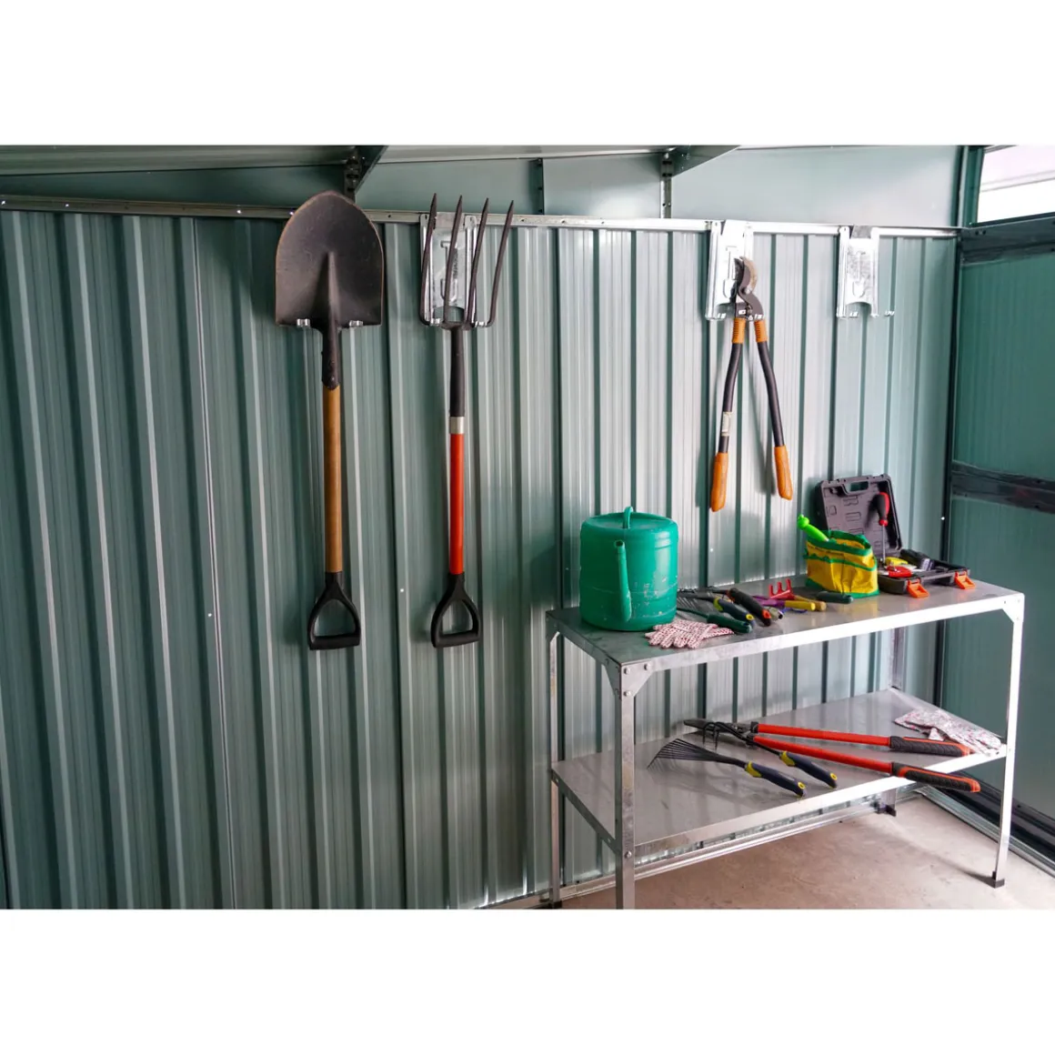 Das robuste und geräumige Gartenhaus bietet viel Platz für Gegenstände aller Art. Dank der stabilen Konstruktion aus Stahlblech ist es besonders langlebig und widerstandsfähig gegenüber Wind und Wetter. Die elegante Optik des Hauses fügt sich harmonisch in jeden Garten ein. Das perfekte Produkt also für alle Hobbygärtnereien!