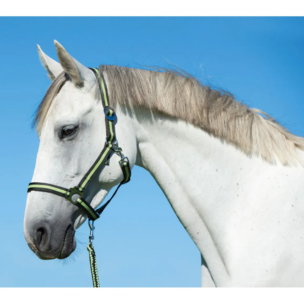 - Nylonhalfter in der Grundfarbe Grün-Schwarz mit Anthrazit-Lemon Akzenten