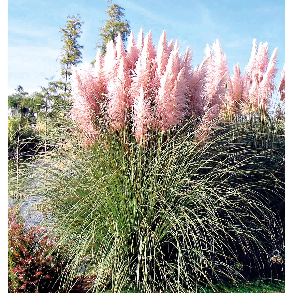 Das Plantiflor Pampasgras Rosea eignet sich für alle Kunden, die ihrem Garten eine besondere Note verleihen möchten und Freude an imposanten Gräsern haben.