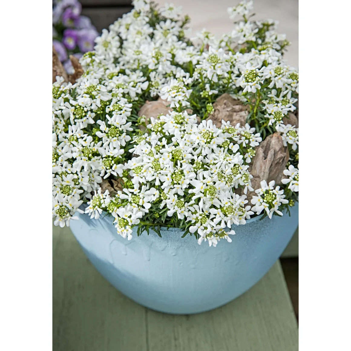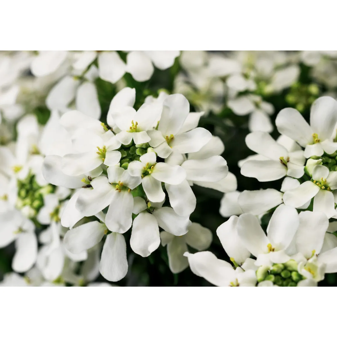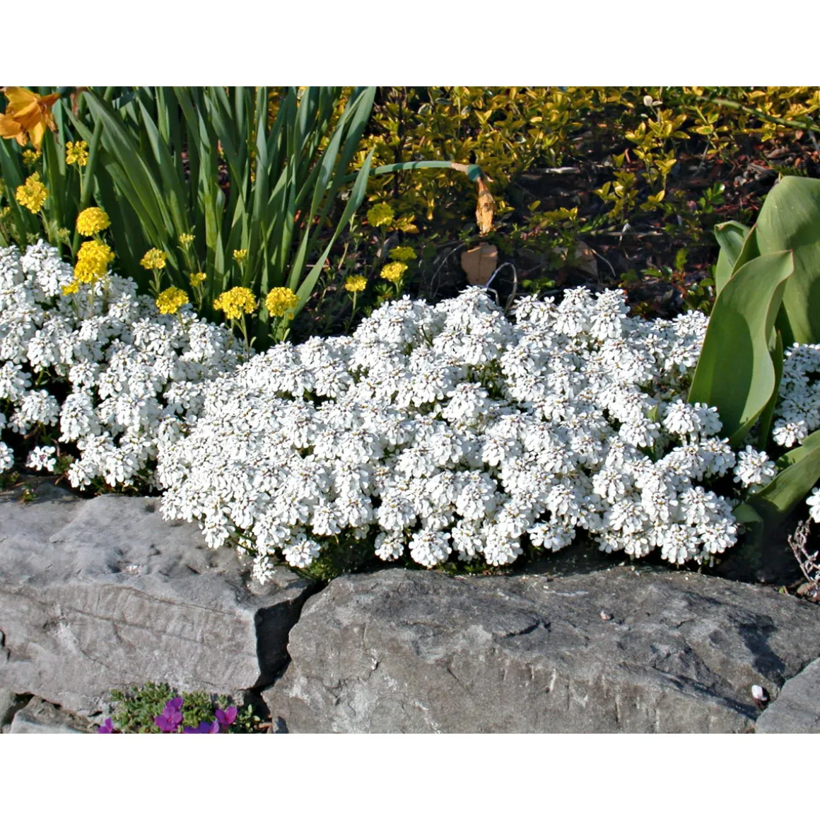 Verschiedene Sorten z.B. Schleifenblume, Blaukissen oder Steinbrech.
