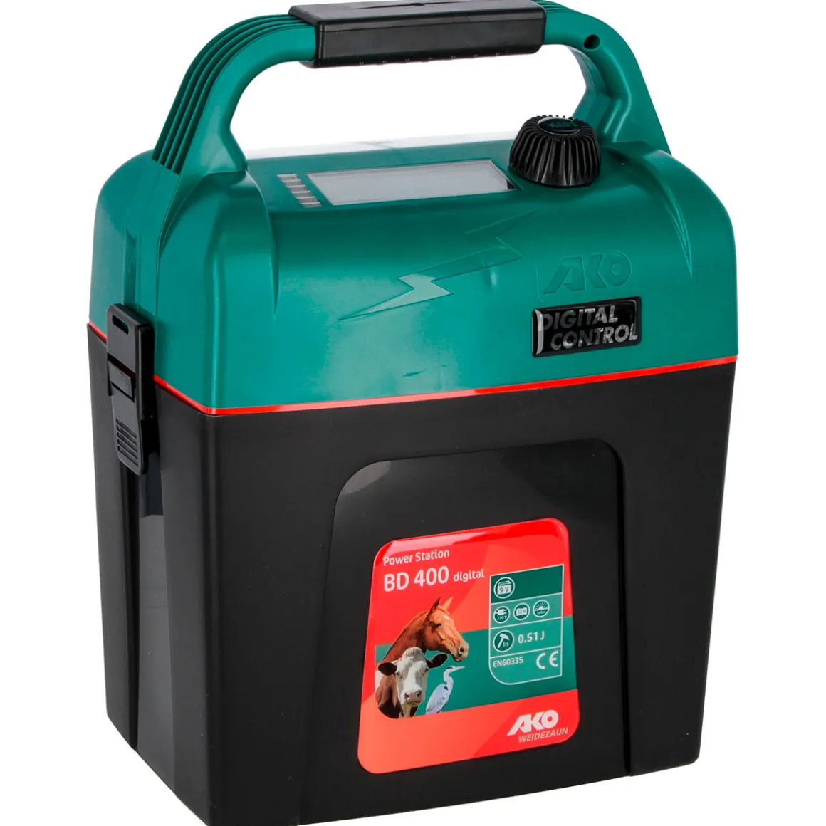Sichern Sie Ihre Weide mit dem Powerstation-Batteriegerät BD digital 400 in schwarz-grün und halten Sie unerwünschte Tiere fern.