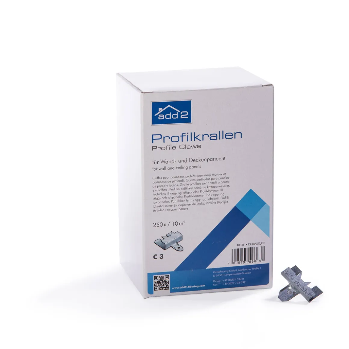 - Paneelkralle zur Anbringung von Wand- und Deckenpaneelen