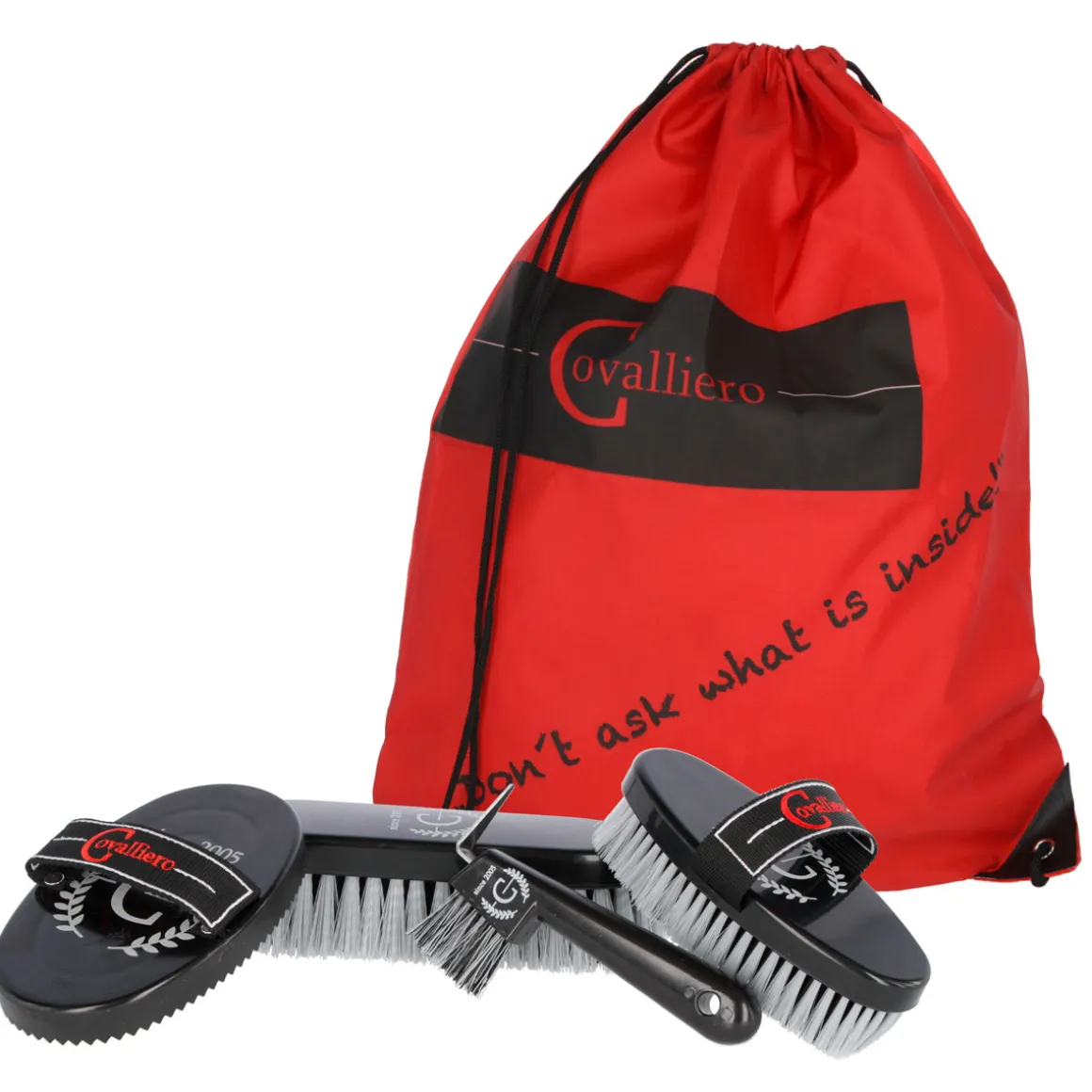 | Lieferumfang: | 1 x Putzbeutel, 1 x Kunststoffstriegel, 1 x Mähnenbürste, 1 x Pferdekardätsche, 1 x Hufkratzer |