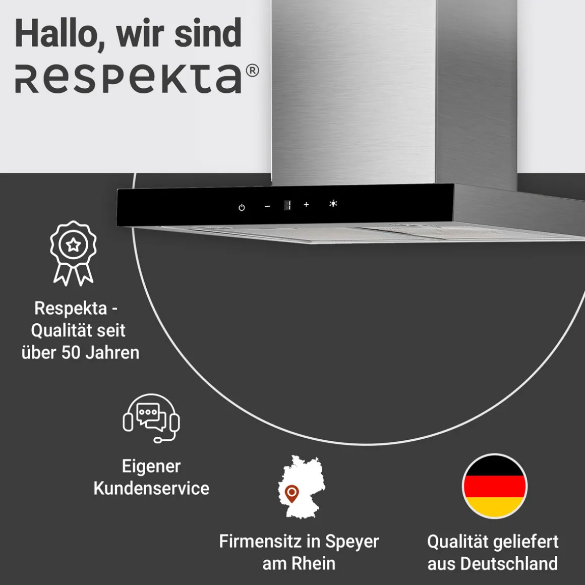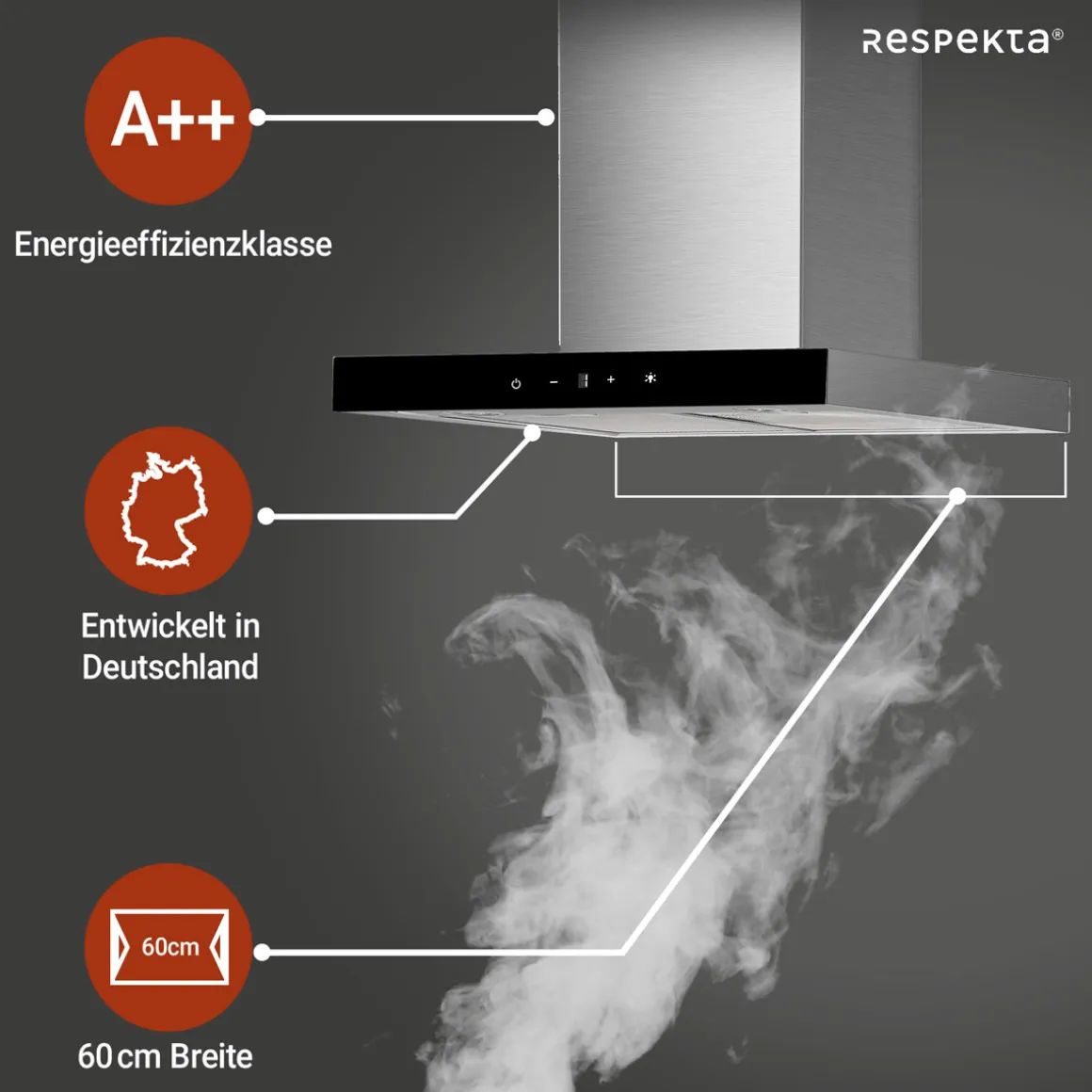 respekta Haube Edelstahl 60cm EEK A++9 Leistungsstufen LED-Beleuchtung