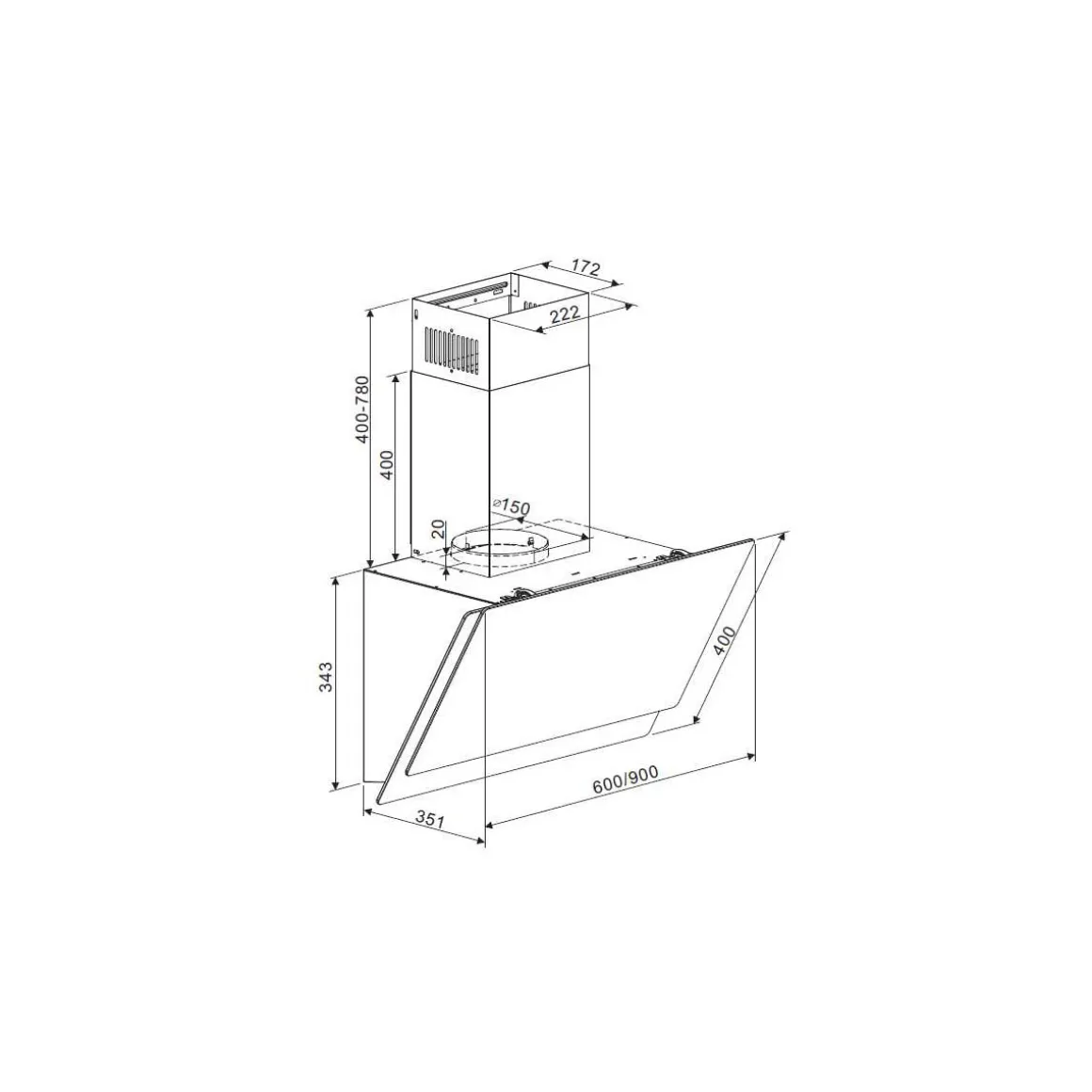 Respekta Selena Kopffreie Schräghaube CH77060WA 60 cm Weiß – Effektive Dunstabzugshaube für Ihre Küche