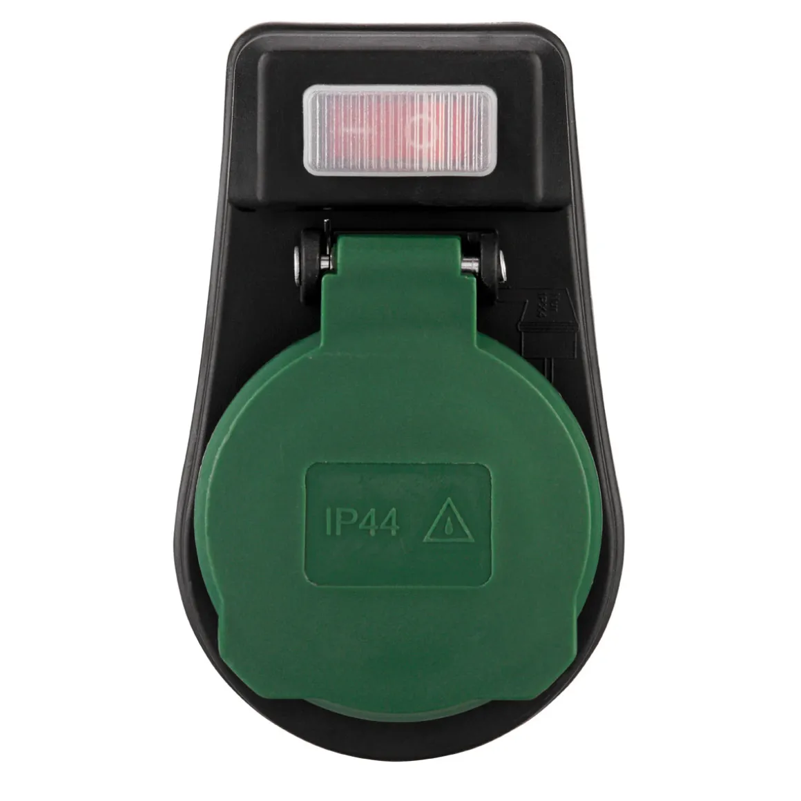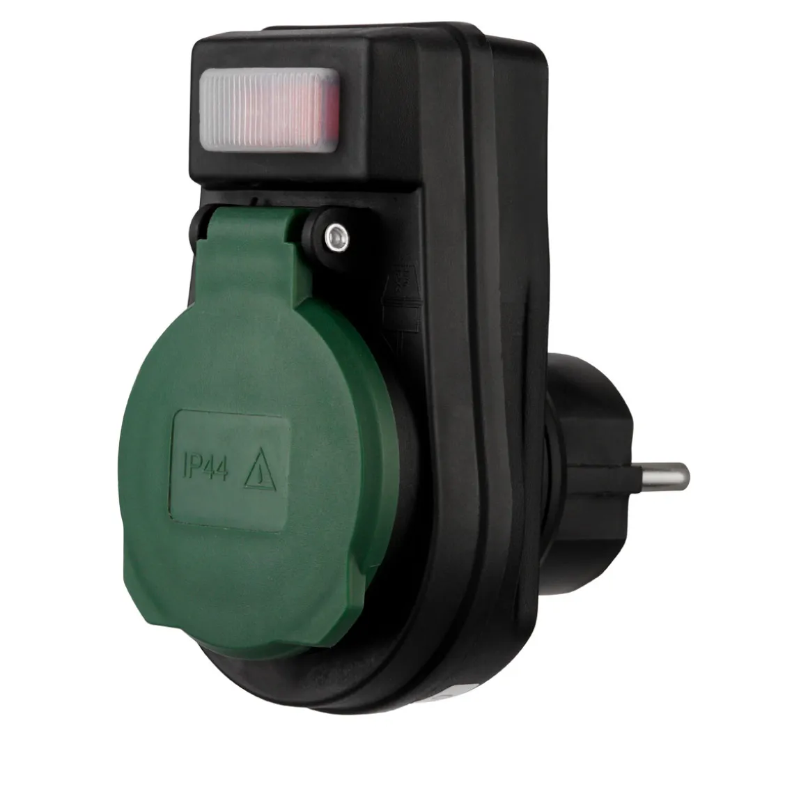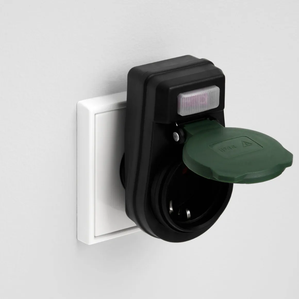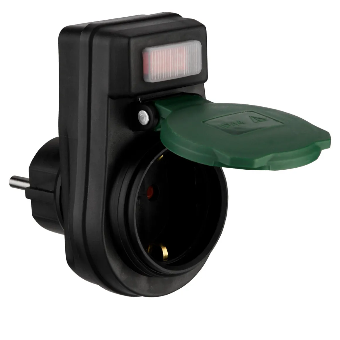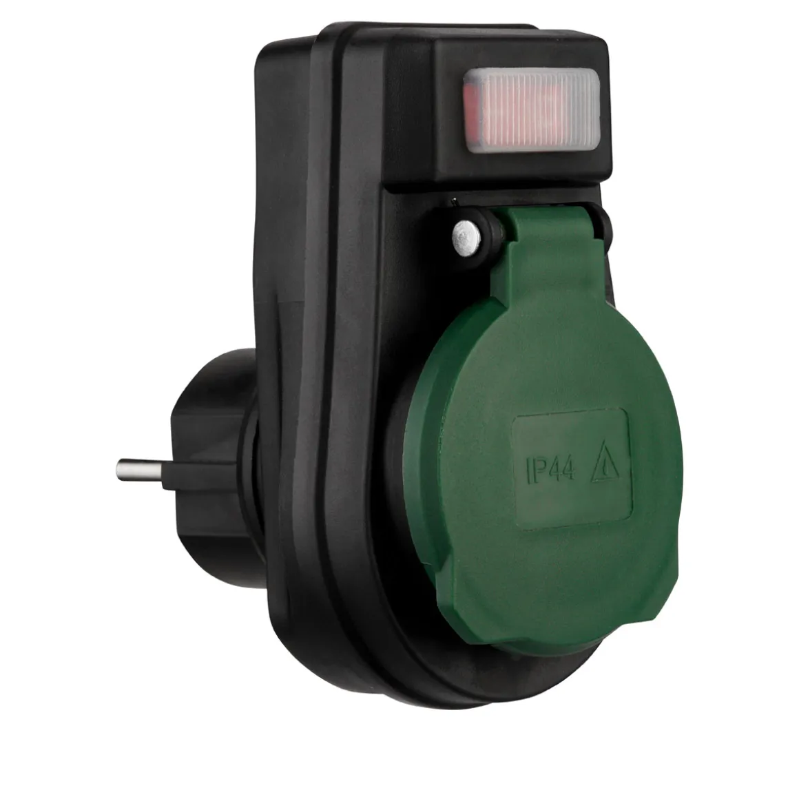 Mit der REV Ritter Außensteckdose mit Schalter IP44 in Schwarz/Grün haben Sie eine robuste und zuverlässige Lösung für den Einsatz im Freien. Der Adapter ist aus Kunststoff gefertigt und verfügt über eine Schutzklasse von IP44, was ihn vor Spritzwasser und Staub schützt.