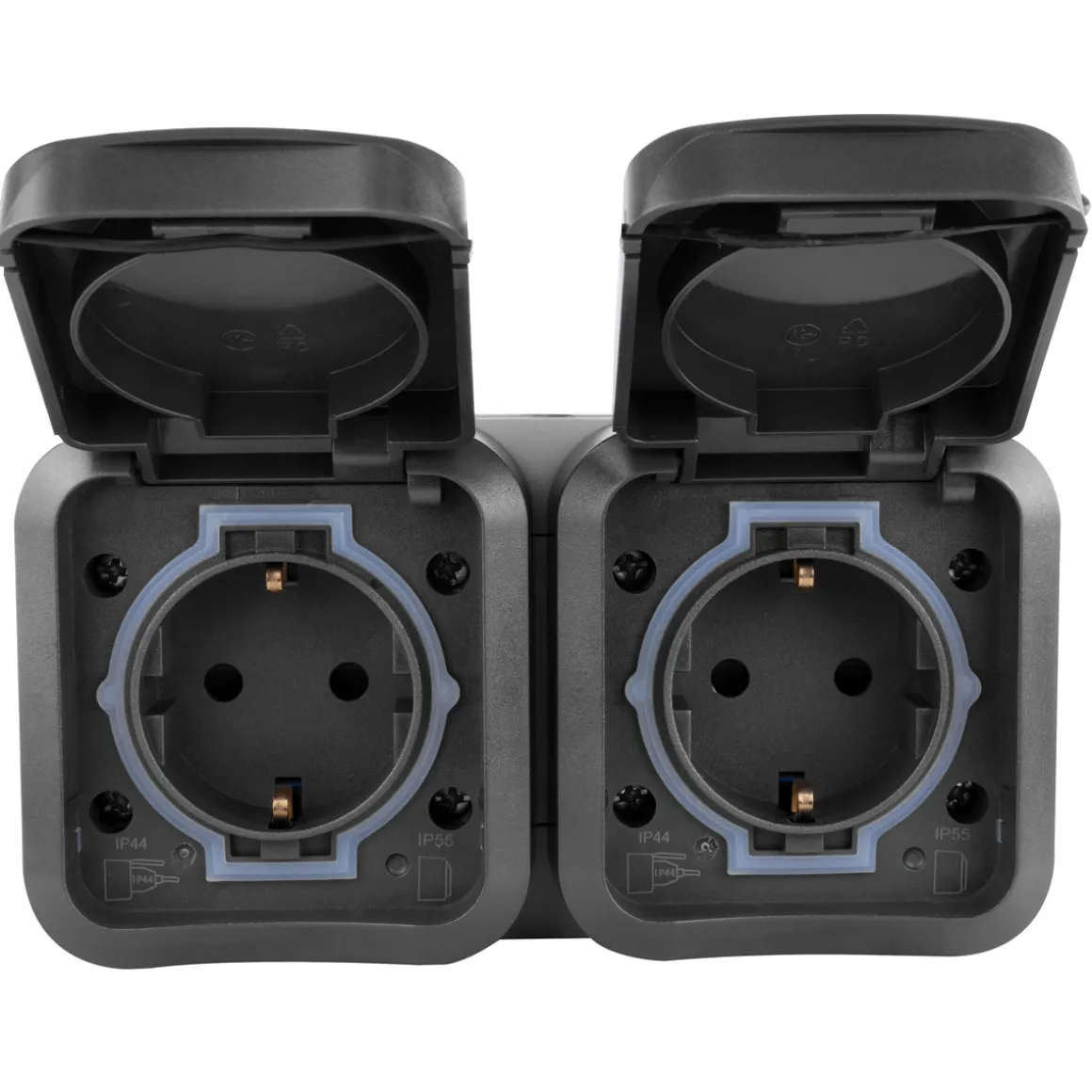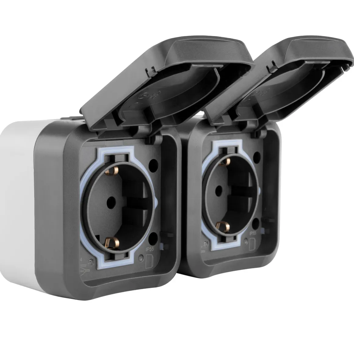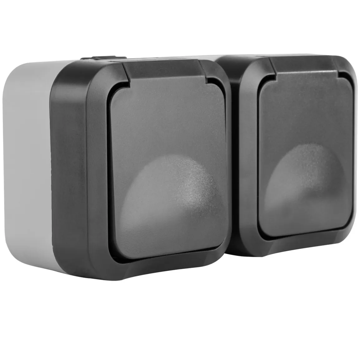SOLIDE – robustes und bruchfestes Gehäuse in ansprechendem BI-Color-Design aus hochwertigem Spezialkunststoff mit erhöhtem Berührungsschutz, Klappdeckel und biegsamer Tülle für eine einfache Leitungseinführung