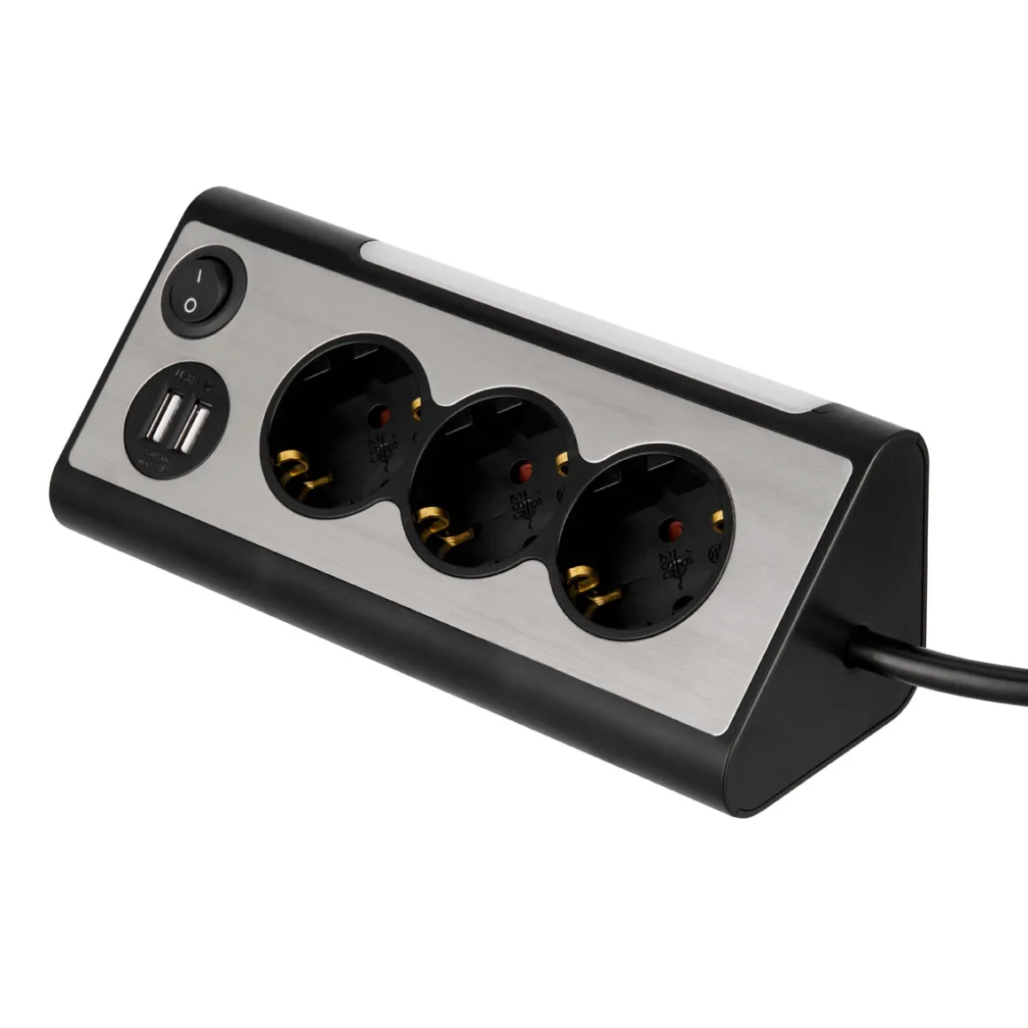 - 3 Schutzkontaktsteckdosen und 2 USB-Anschlüsse bieten ausreichend Platz für alle Ihre Geräte
