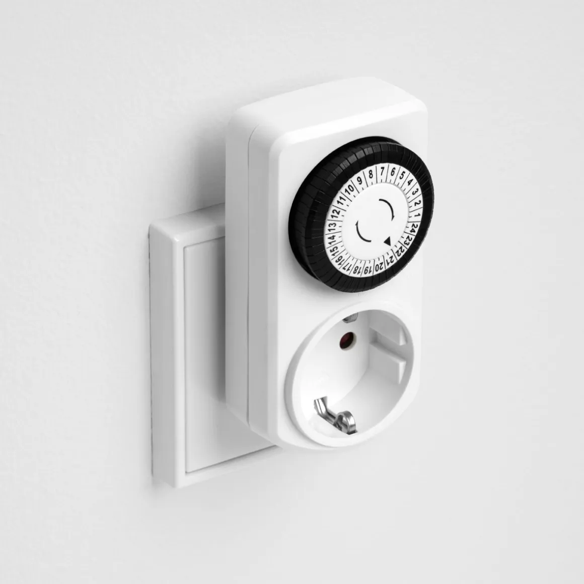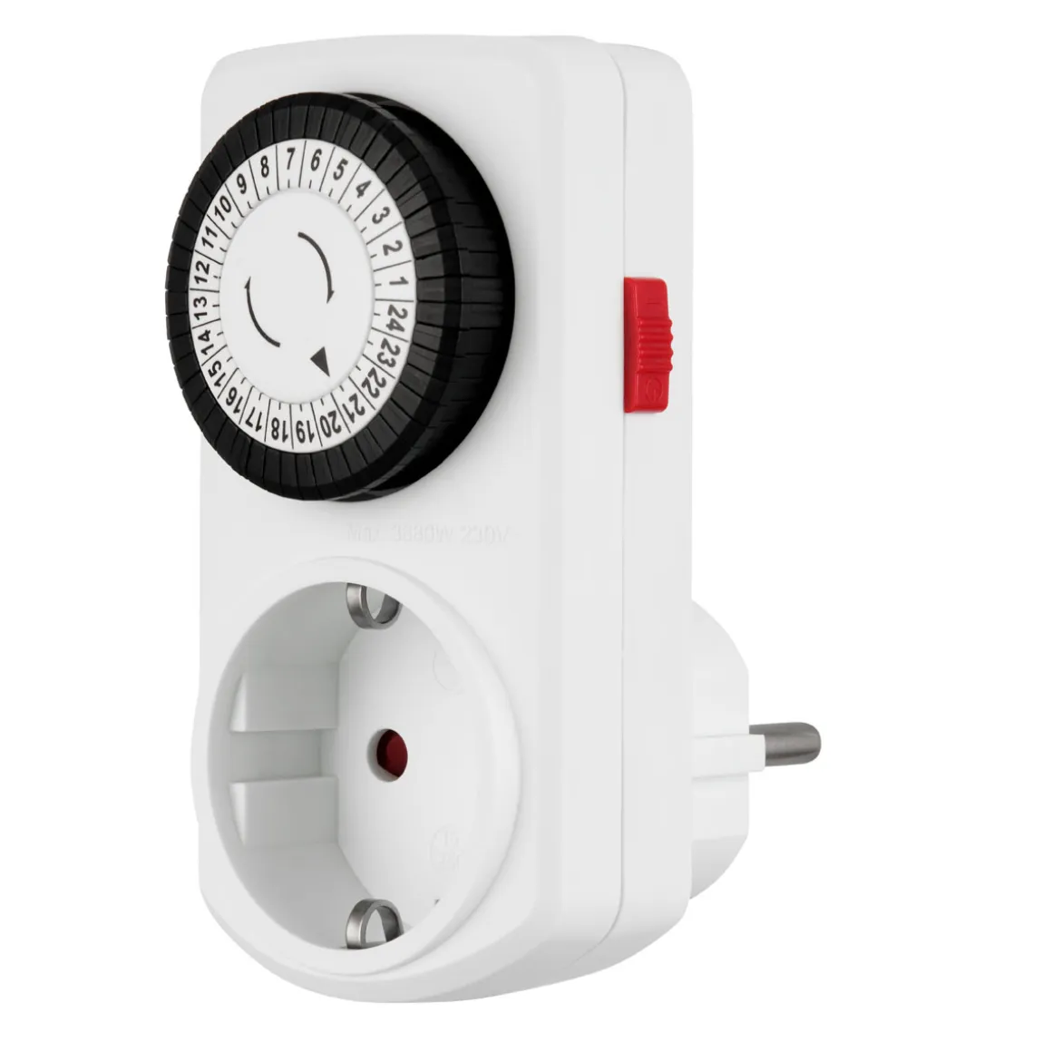 - PRAKTISCH – Zwischenstecker mit Schalter für Ein/Aus und zeitgesteuertes Schalten (1-polig).