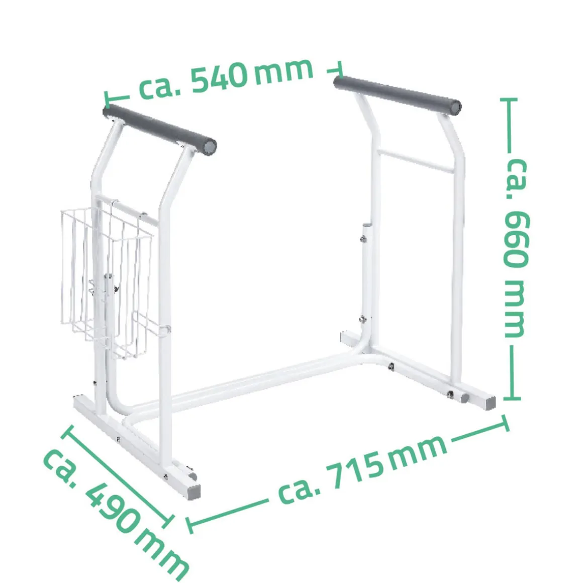 Mit der Ridder Mobile WC-Aufstehhilfe inklusive Ablagekorb wird das Aufstehen und Hinsetzen auf der Toilette zum Kinderspiel. Die ergonomischen Griffe aus Soft-Schaum bieten optimalen Halt und ermöglichen ein bequemes Abstützen beim Hinsetzen oder Aufstehen.