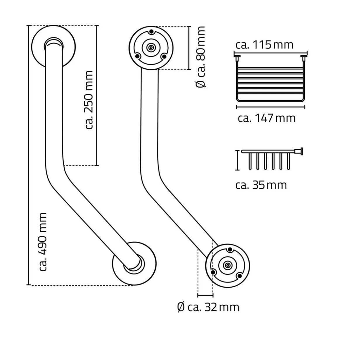 Ridder Winkel-Haltegriff inkl. Ablagekorb Sam M chrom – Sicherheit und Komfort im Badezimmer