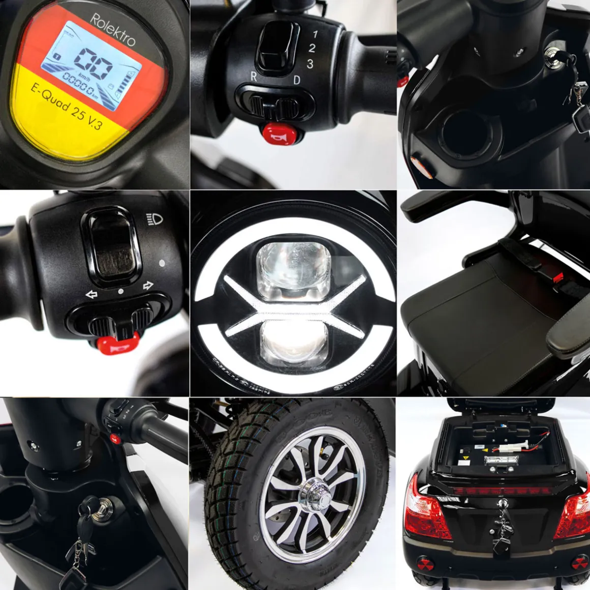 Das Rolektro E-Quad 25 V.3 ist die Alternative für Alle, die sich aufgrund der Fahrstabilität nicht auf 2-Rädern fortbewegen möchten und alternativ dazu ein praktisches und cooles elektrisches Gefährt suchen.