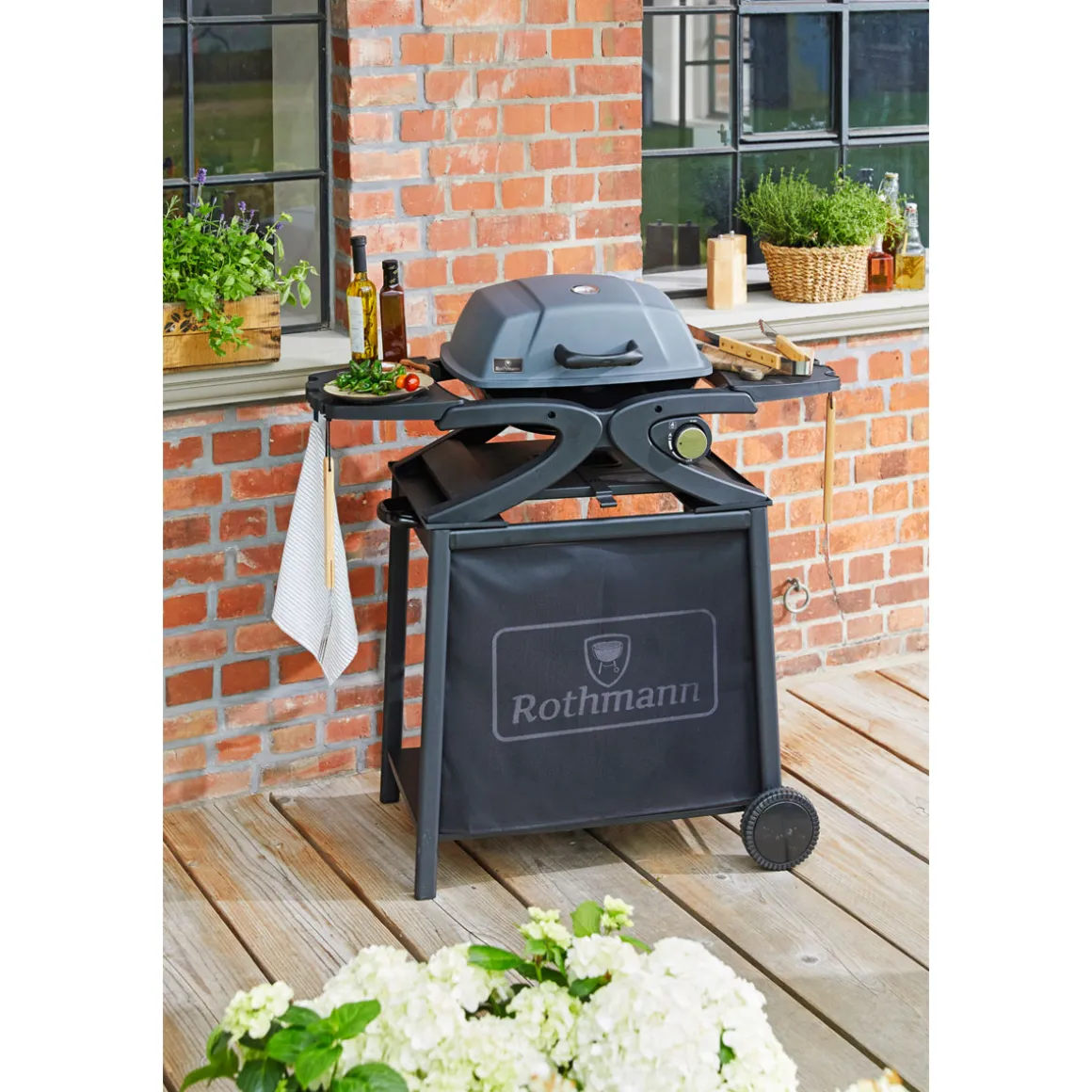 Der Rothmann Grillwagen überzeugt durch seine hochwertige Verarbeitung und seine praktischen Extras wie die Gasflaschenhalterung und die stabilen Triangel-Racks. Die geschlossene Frontblende sorgt dafür, dass keine Asche oder Kohlereste herausfallen können und die großen Räder machen den Transport zum Kinderspiel. Mit diesem Wagen wird jede Ihrer nächsten Gartenpartys ein voller Erfolg!
