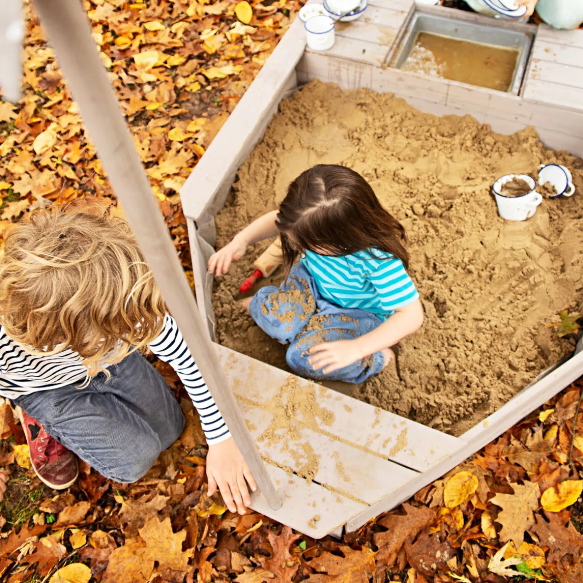 - Dank einer Altersempfehlung ab zwölf Monaten eignet sich der Sandkasten schon frühzeitig.