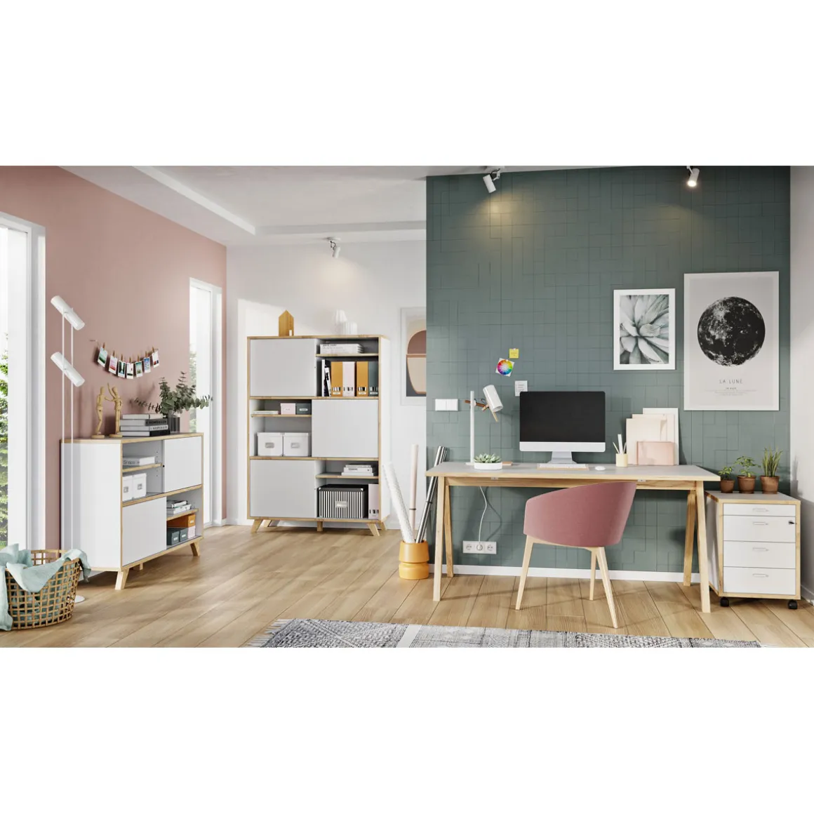 - Elegante Farbkombination aus Weiß und Navarra Eiche für eine zeitlose Optik in jedem Raum