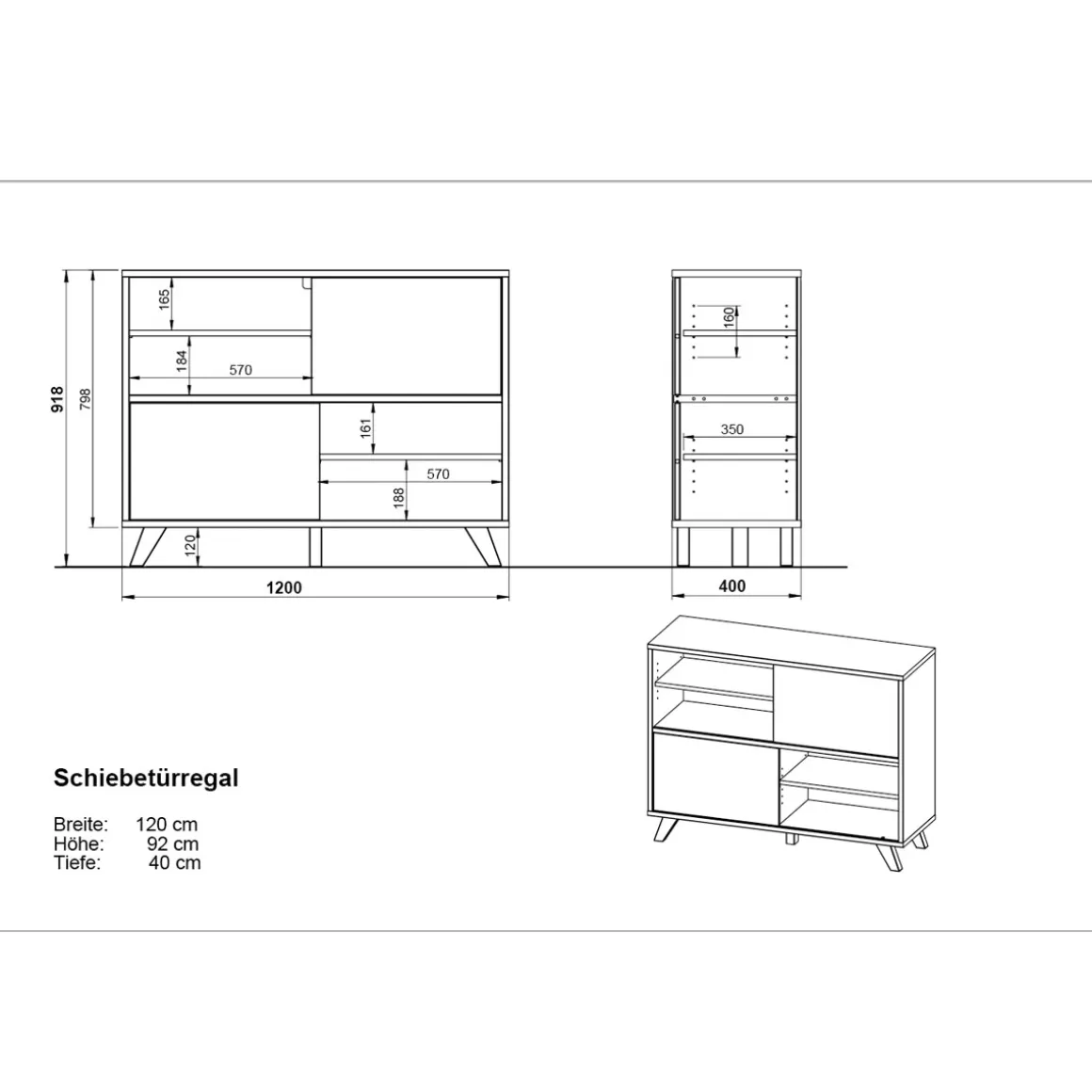 - Kompakte Maße (120 x 92 x 40 cm) machen das Regal ideal auch für kleinere Räume geeignet
