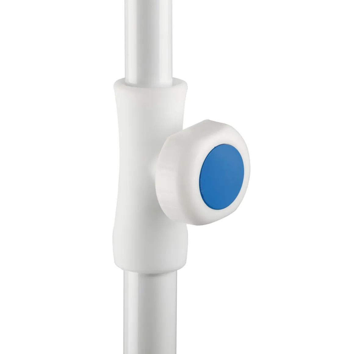Der Balkonschirm „Ibiza“ hat eine Bespannung aus 100 % Polyester ca. 150 g/m². Er ist verrottungsfest, wasserabstoßend imprägniert und hat einen Volant und Bandeinfassung. Der UV-Schutz liegt bei 50+. Der Schirm hat einen Durchmesser von circa 240 cm. Das Gestell ist aus weißem pulverbeschichtetem Stahl. Der Stock ist zweiteilig 22/25 mm Ø. Er hat einen Metallknicker. Die Farbe Farbe ist antrazit.